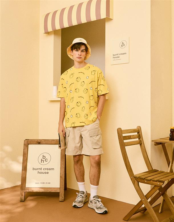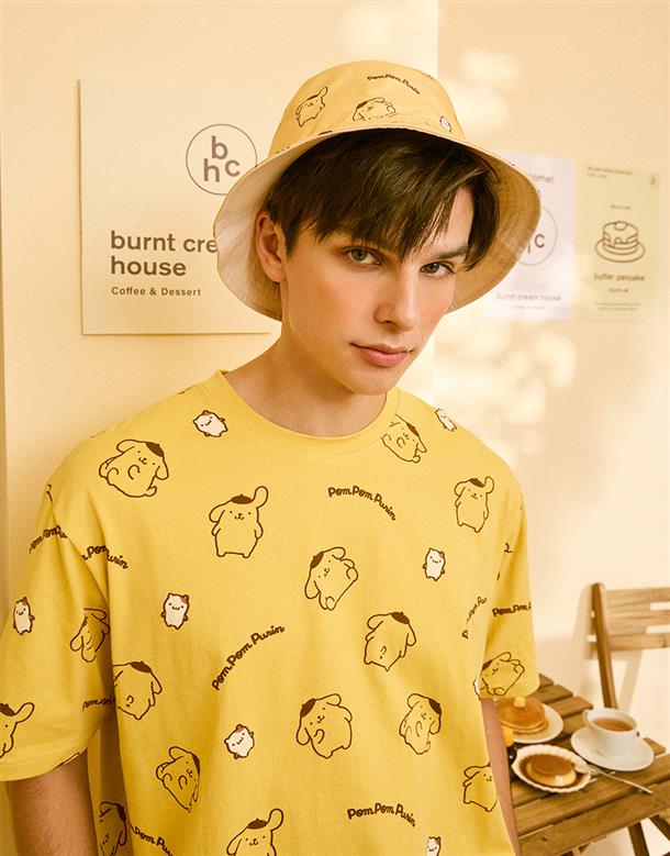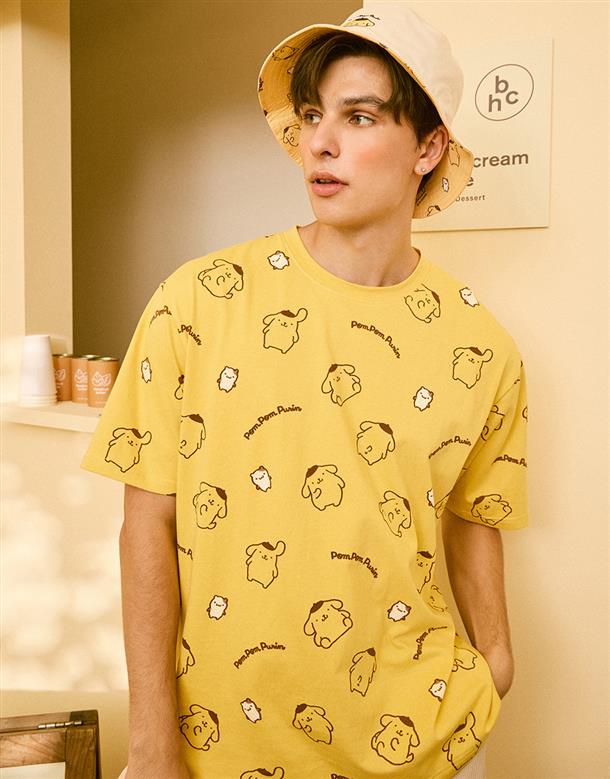 布丁狗滿版印花落肩短TEE。