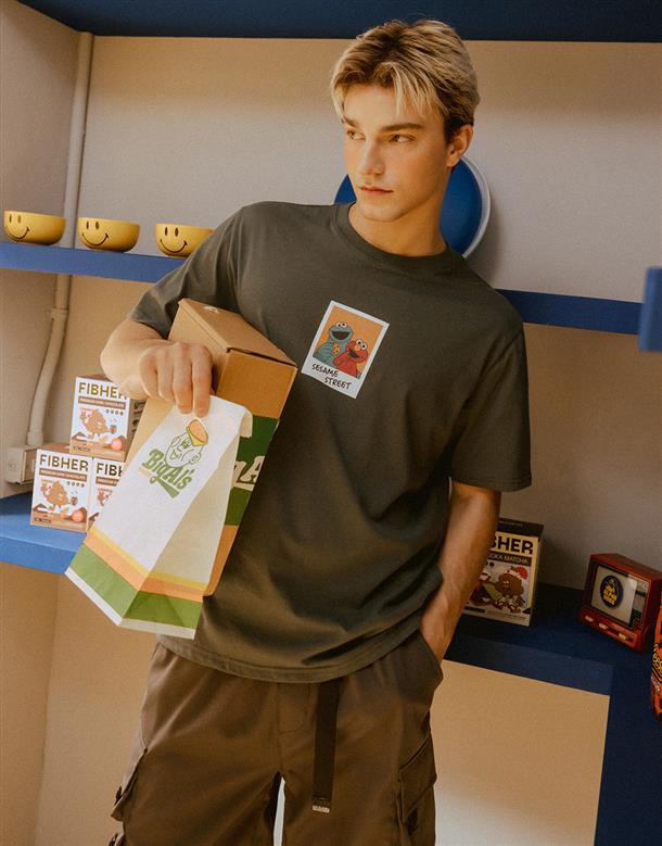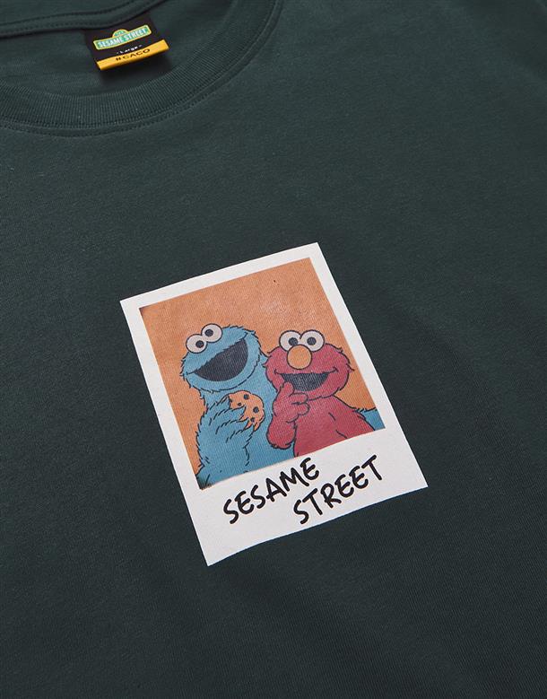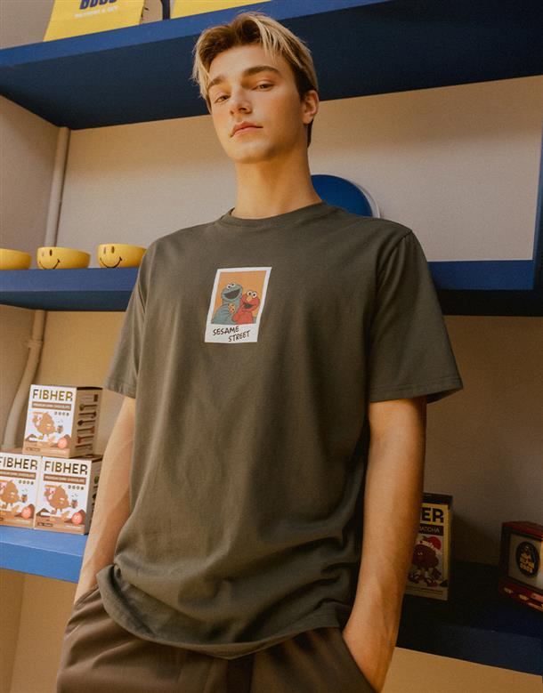 Elmo 與甜餅怪拍立得造型感溫變色印刷,舒適精梳棉短TEE。