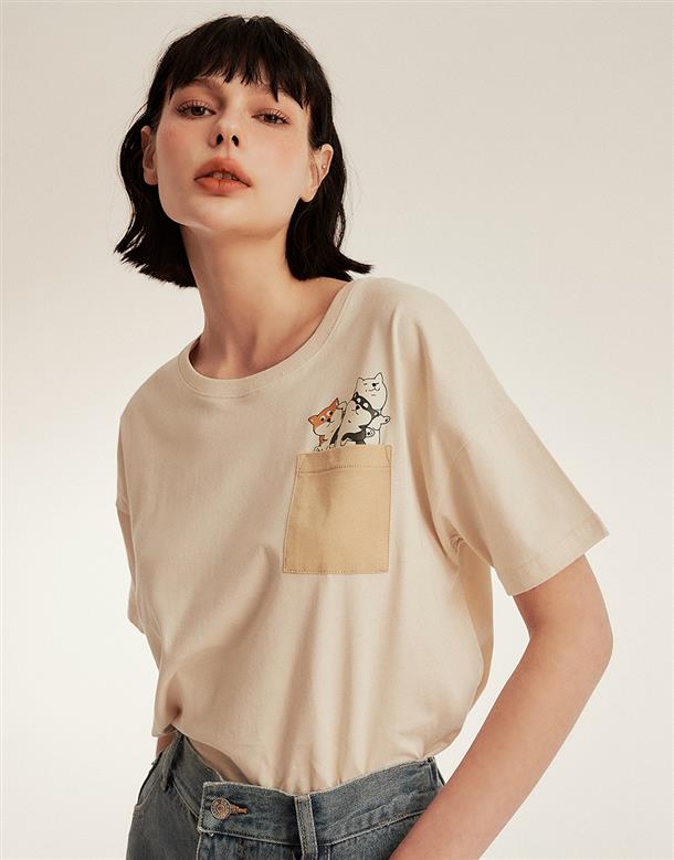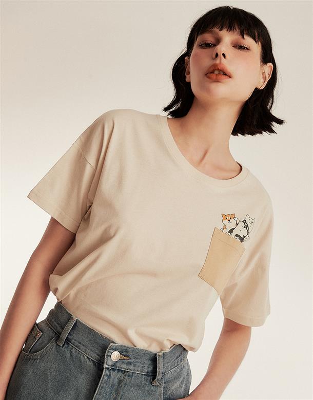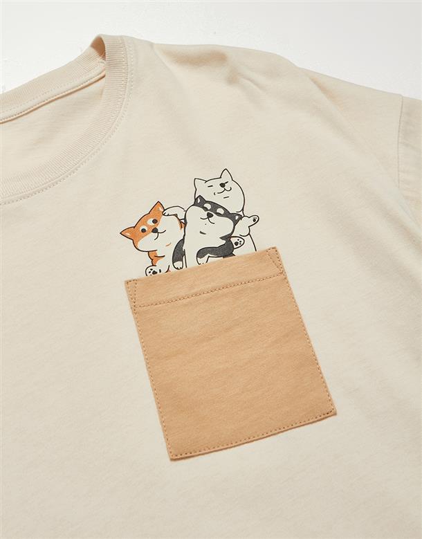 趣味口袋柴犬兄弟紙箱設計,舒適美國棉質短袖T恤。