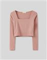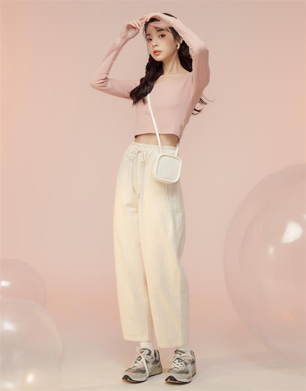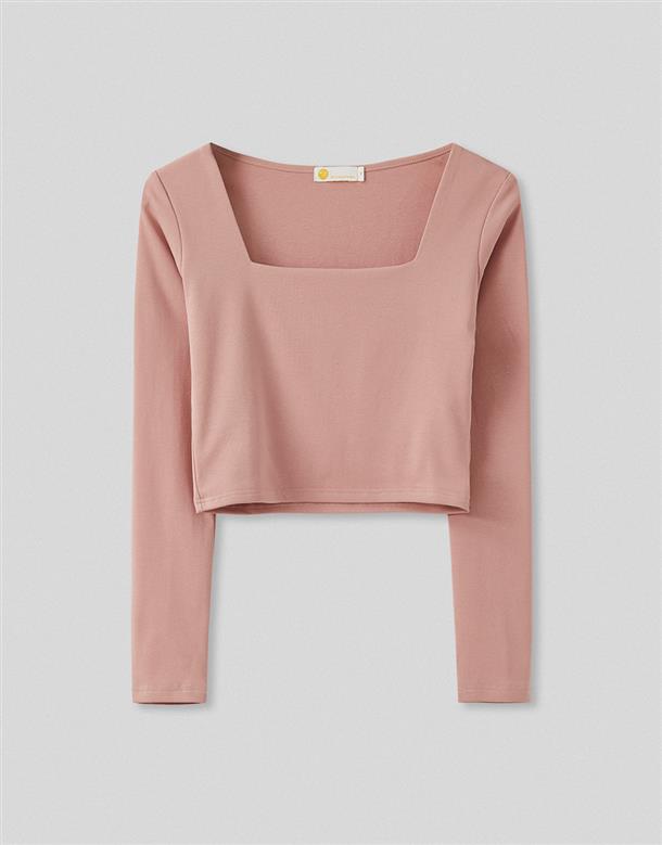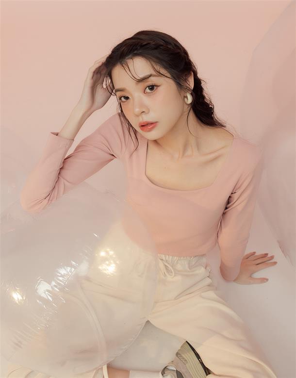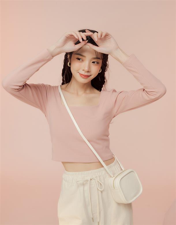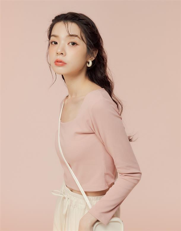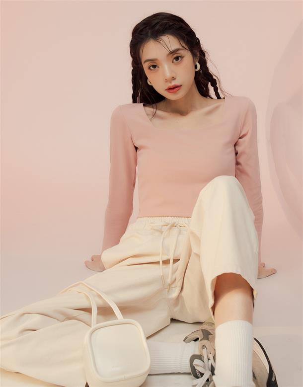 舒適彈力面料,合身方領版型,純色簡約日常上衣。