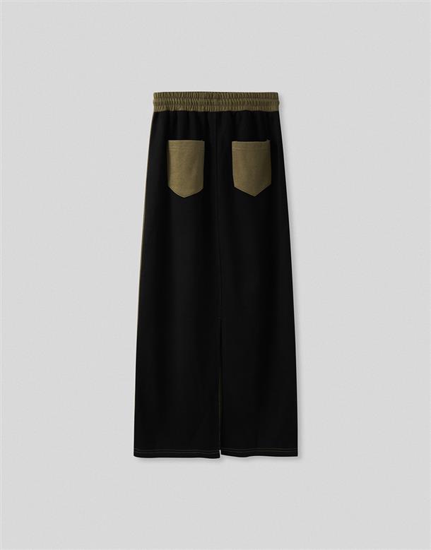 質感柔軟棉質衛衣面料,腰圍鬆緊帶抽繩設計,正反面做撞色設計,背面貼口袋,後下擺做開衩好活動,版型修身顯瘦。