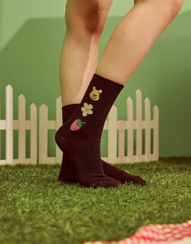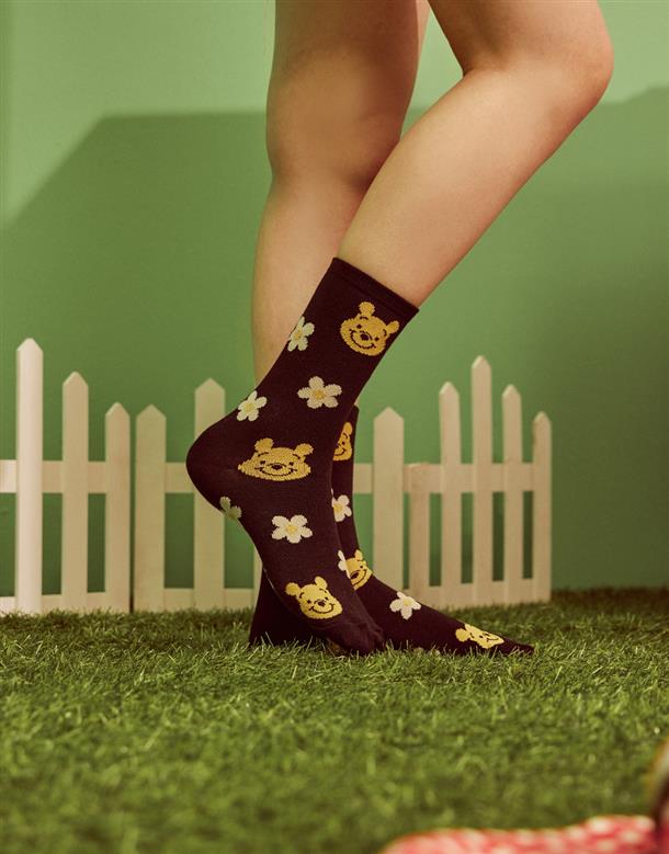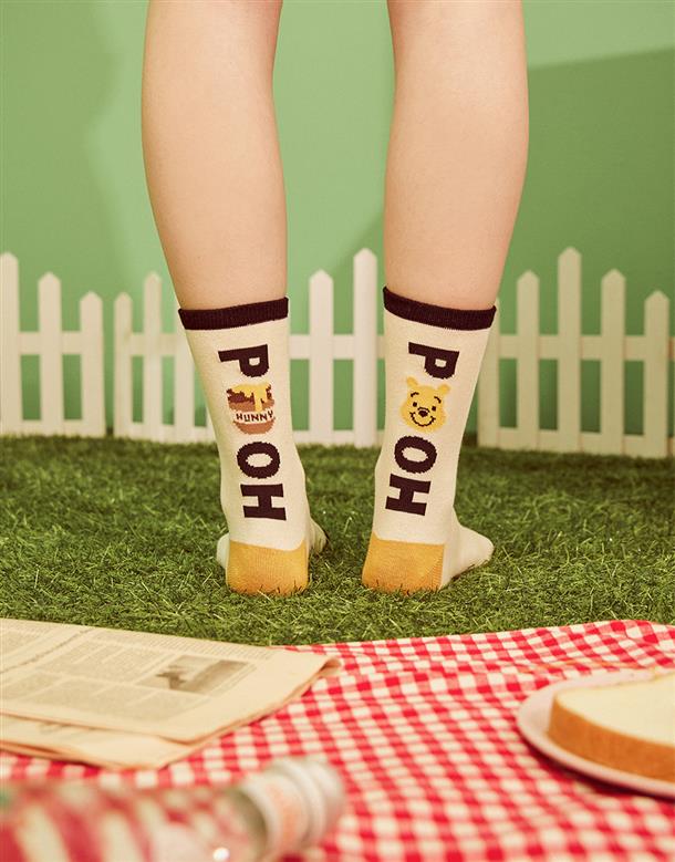 小熊維尼系列中長襪套組,版型為中性版,舒適棉穿搭款。