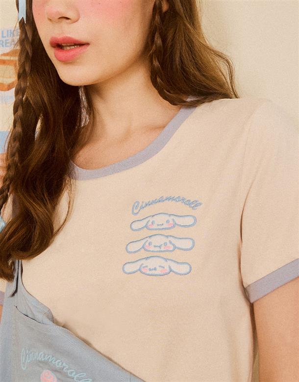 大耳狗撞色短TEE,舒適棉質面料。