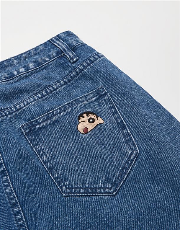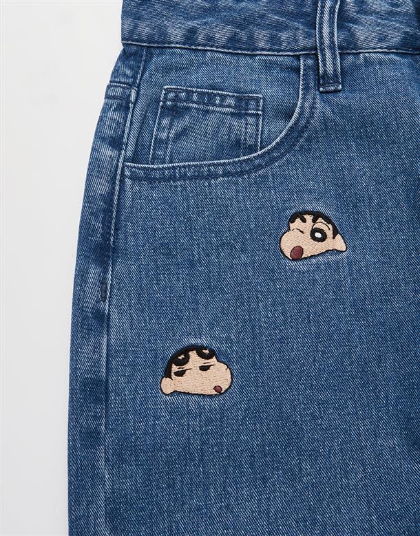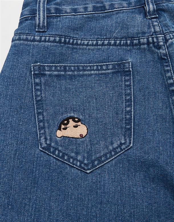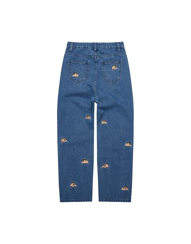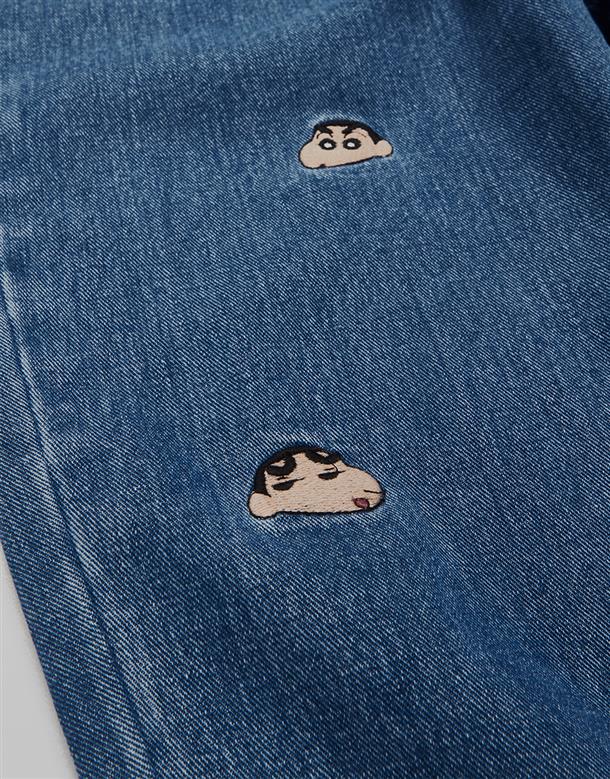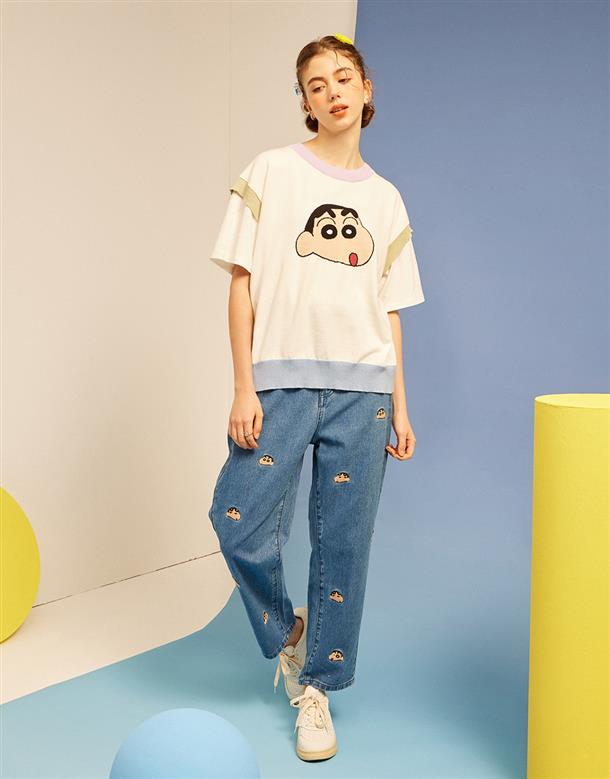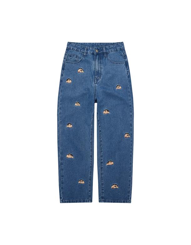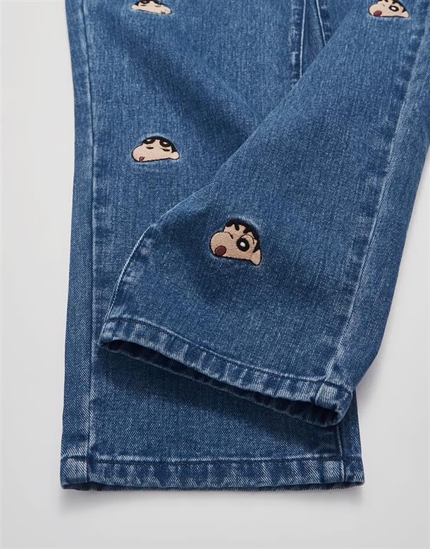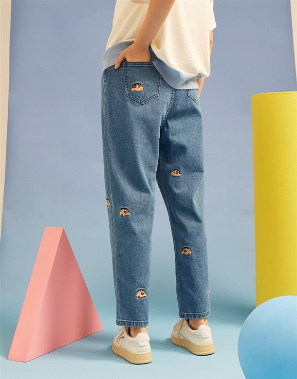 小新滿版精緻電繡,男友風寬鬆牛仔褲。