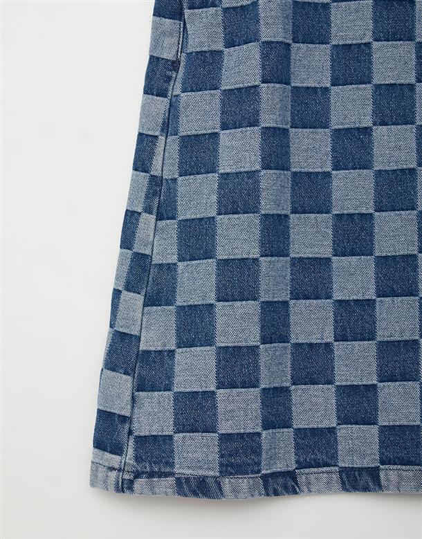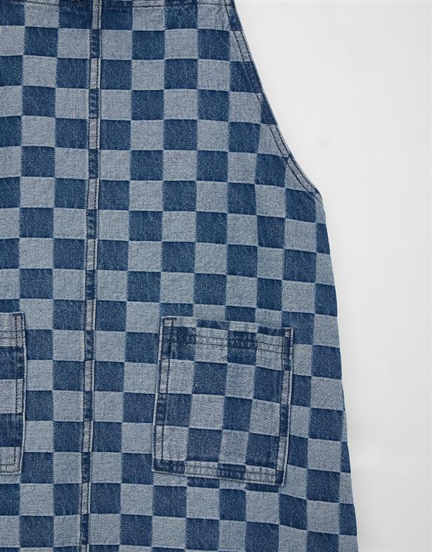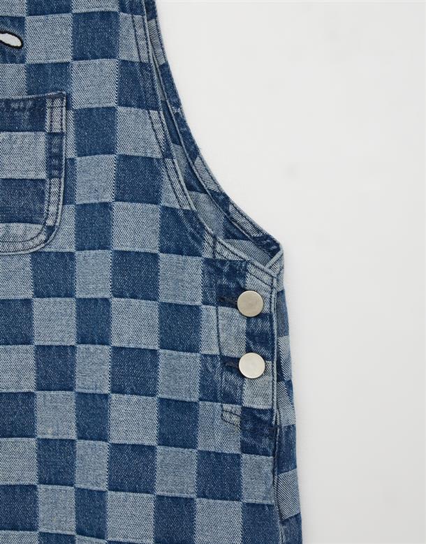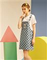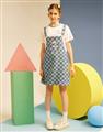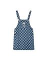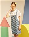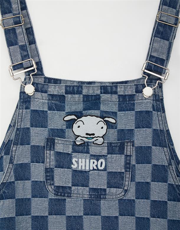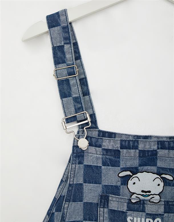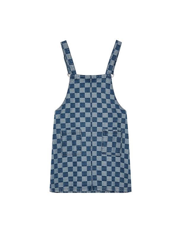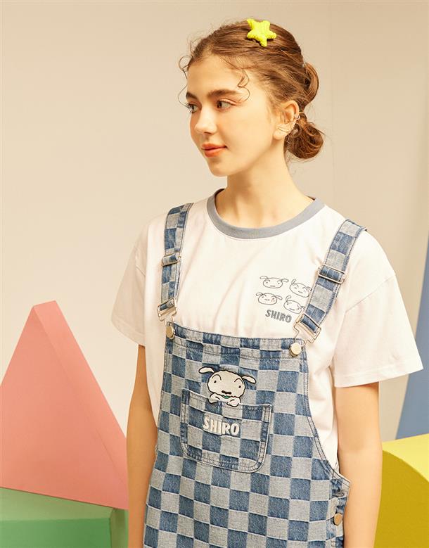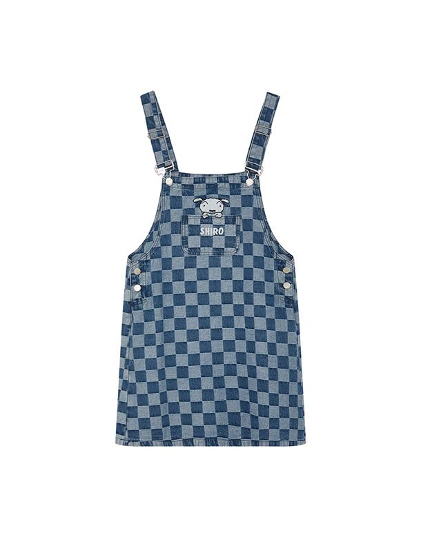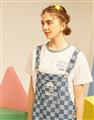 小白探頭電繡,流行格紋刷色,百搭牛仔吊帶裙。