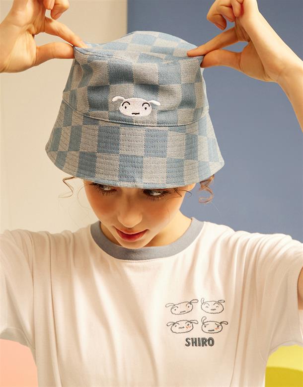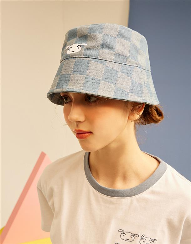 小白細緻電繡,流行格紋刷色,百搭牛仔漁夫帽。