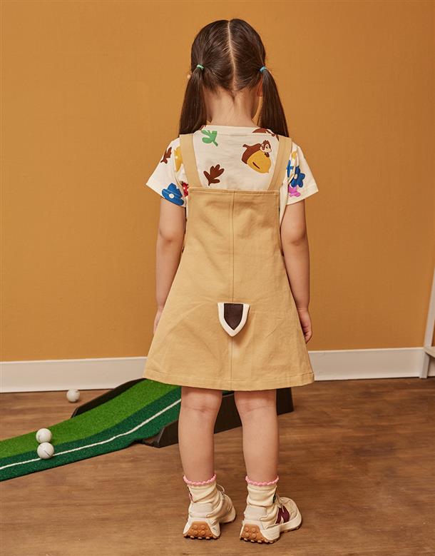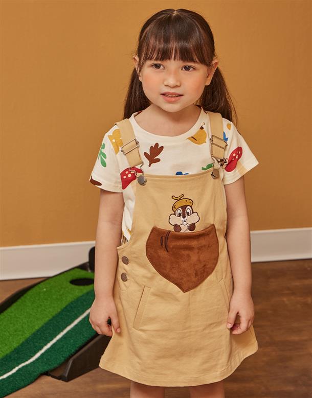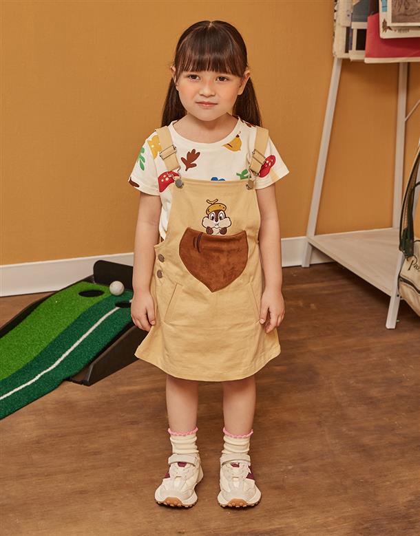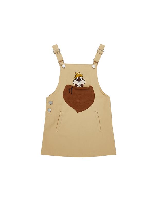 奇奇精緻電繡栗子口袋,背面造型尾巴,趣味吊帶裙。