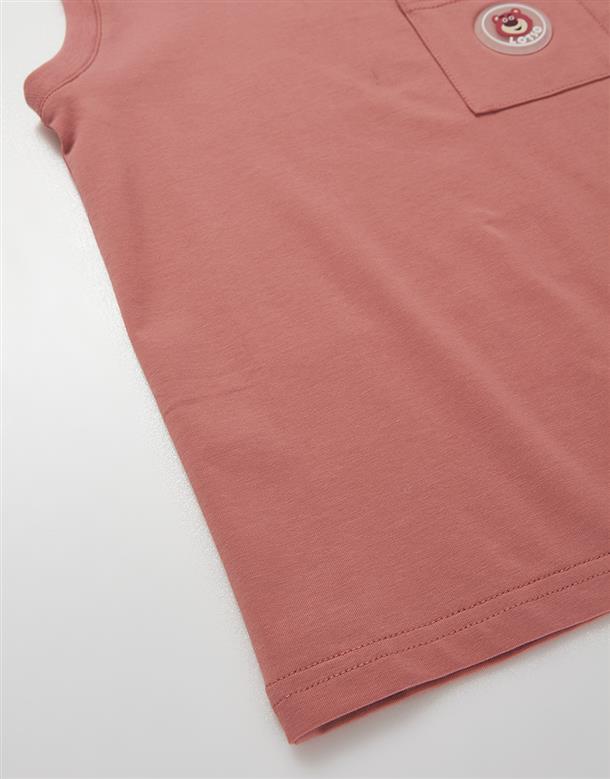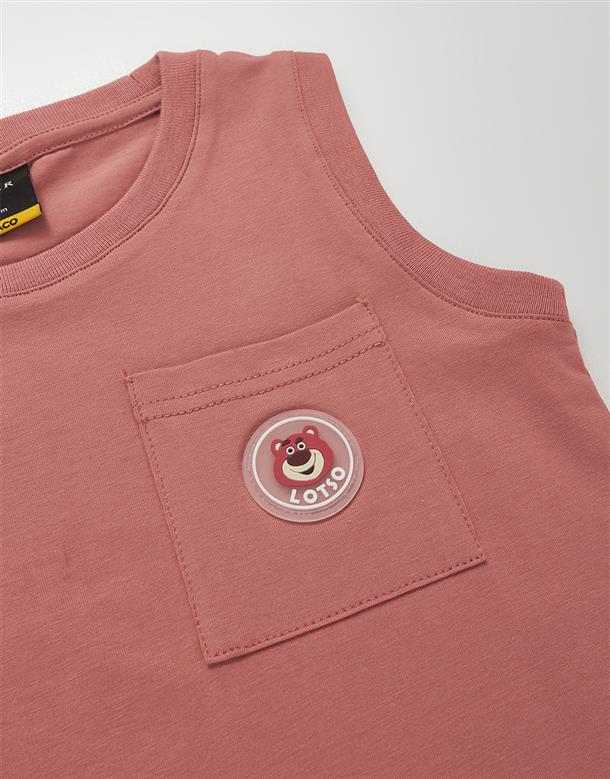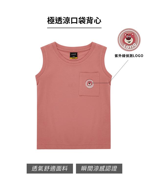 訂製機能涼感面料,趣味熊抱哥UV變色滴膠章設計,落肩寬鬆版背心。