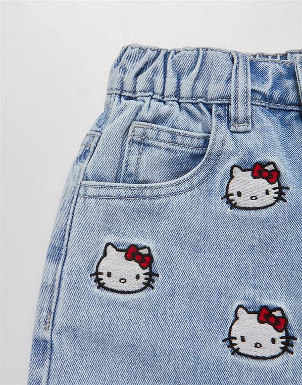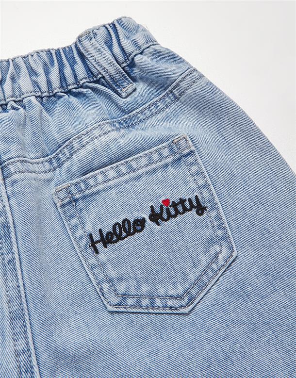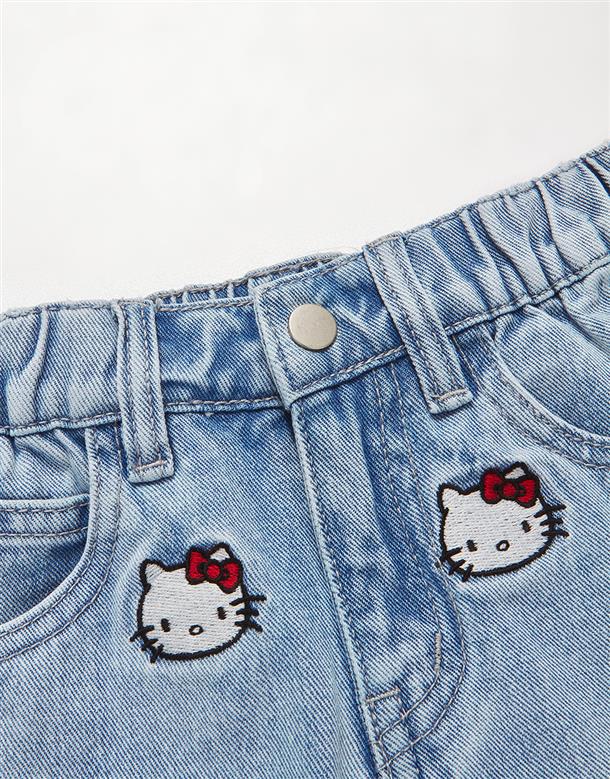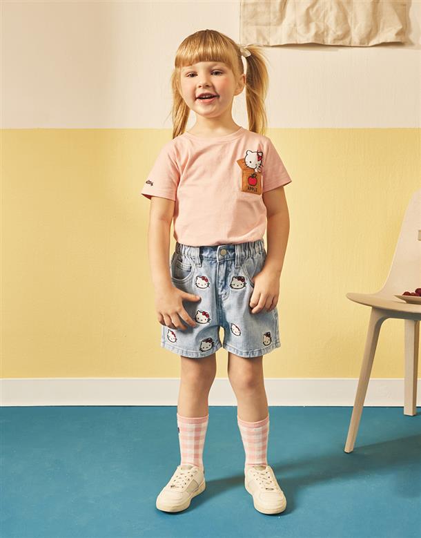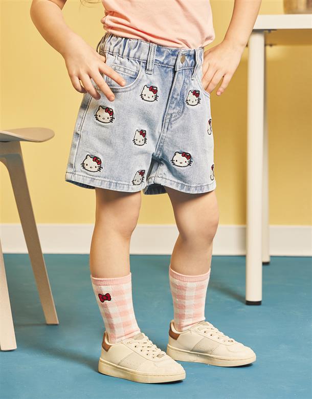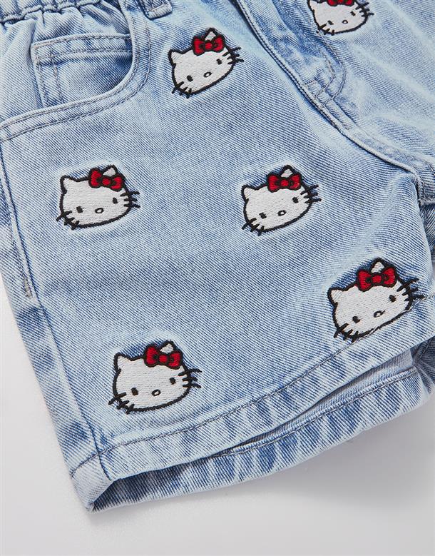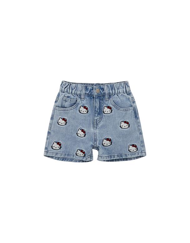 凱蒂貓牛仔短褲,面料洗水加工,質感繡花設計。