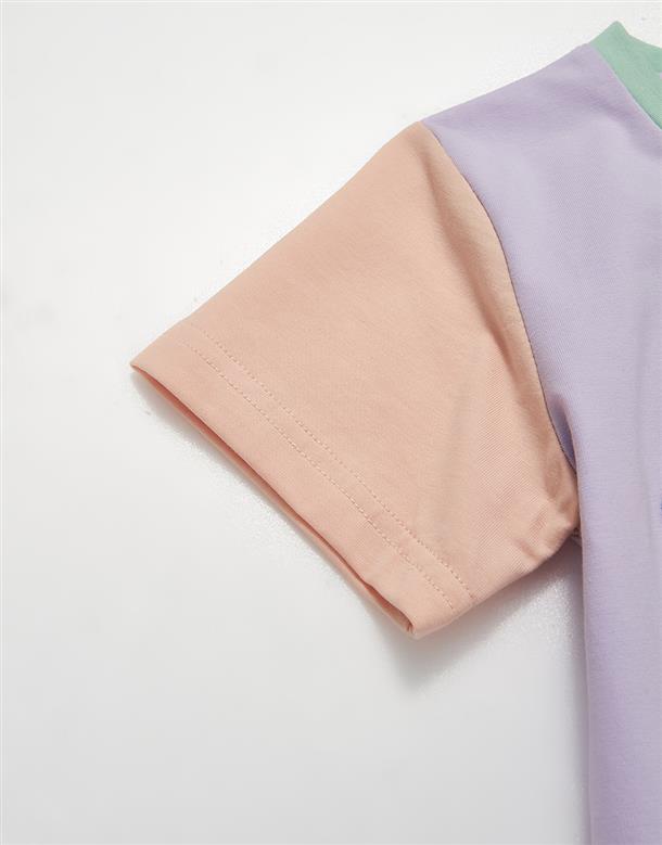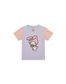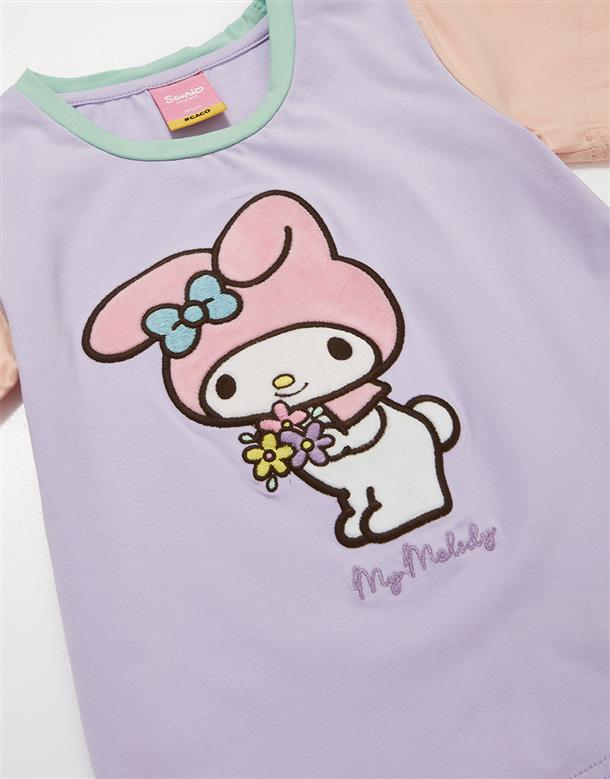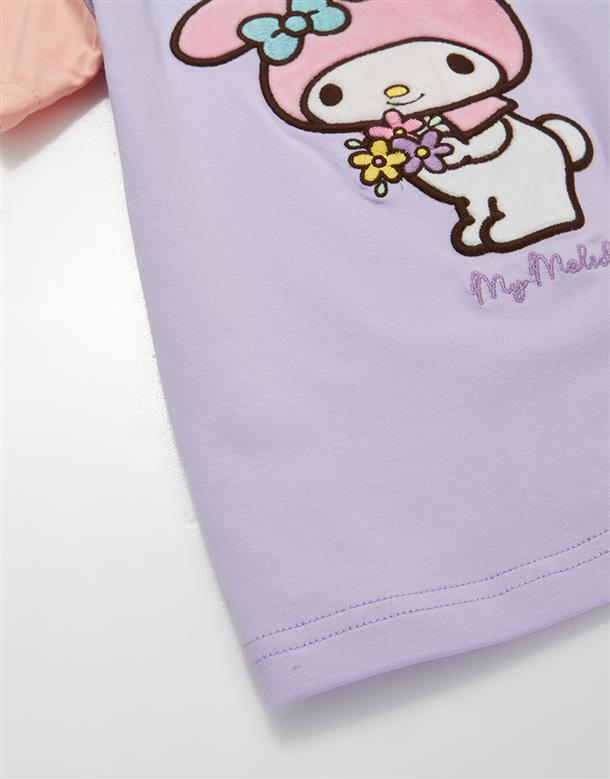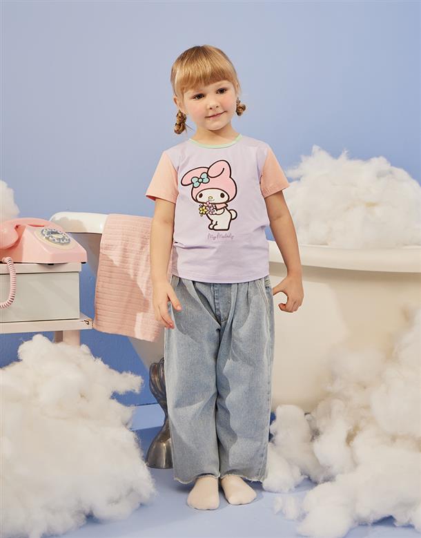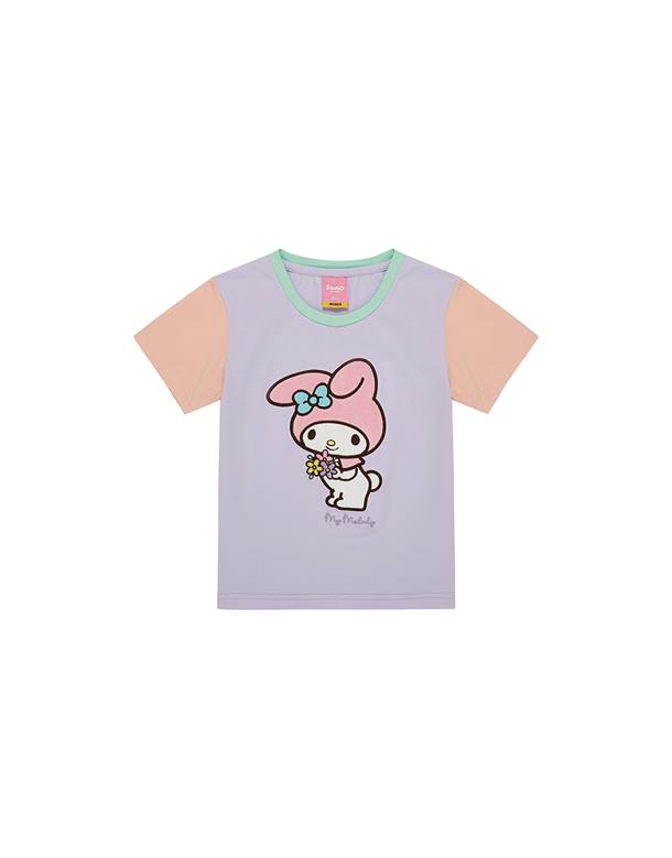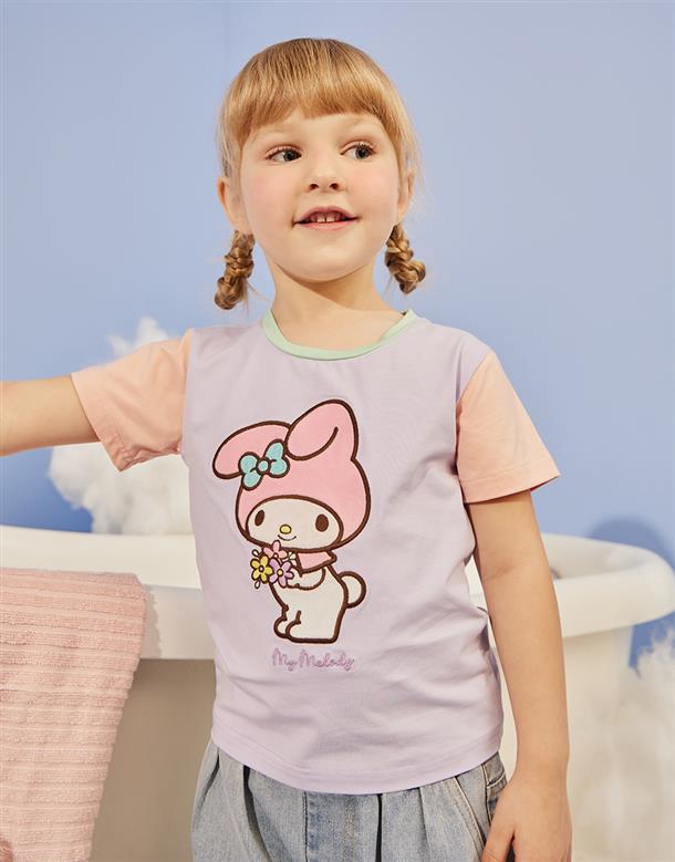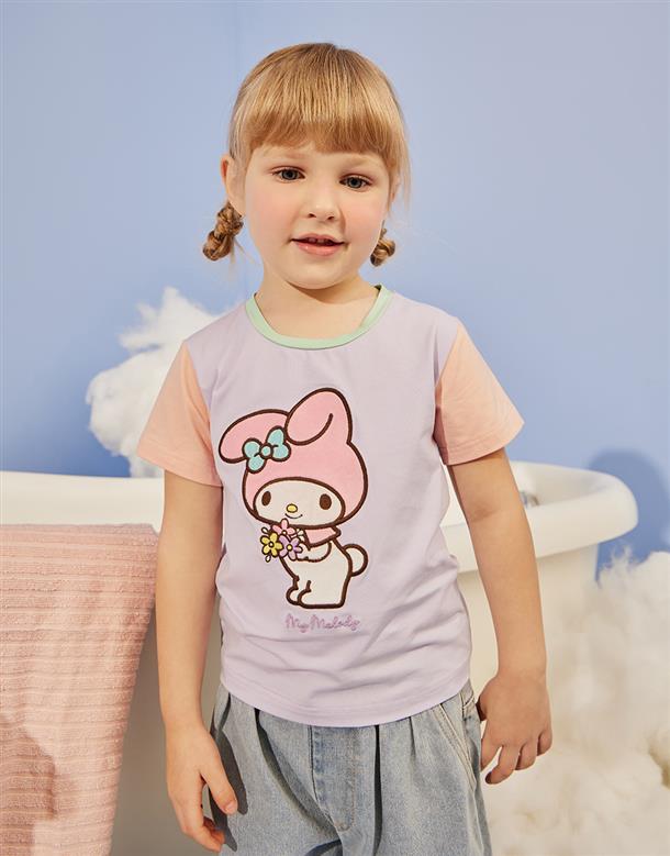 粉嫩拼色上衣,美樂蒂精緻貼布工藝。
