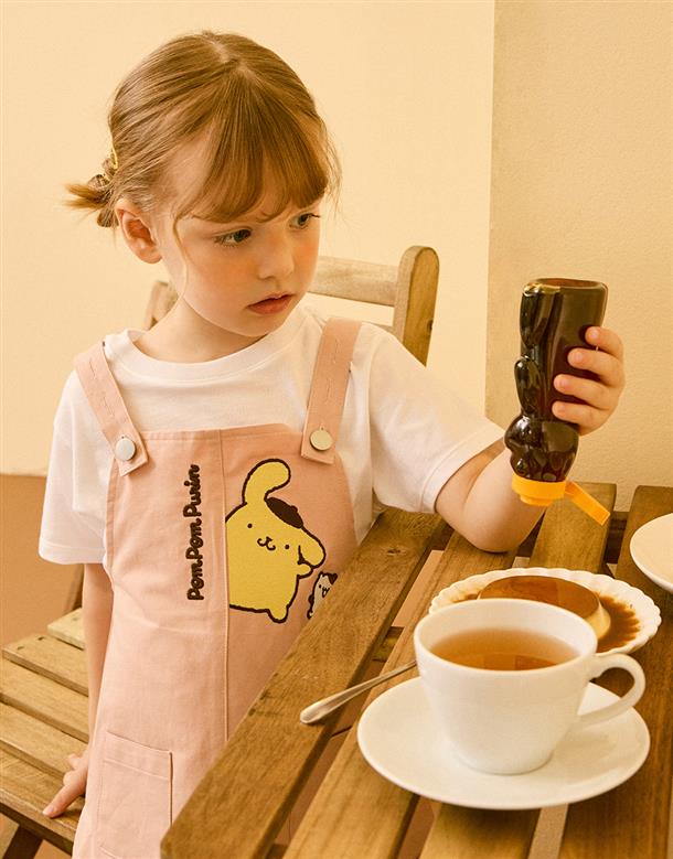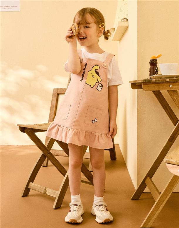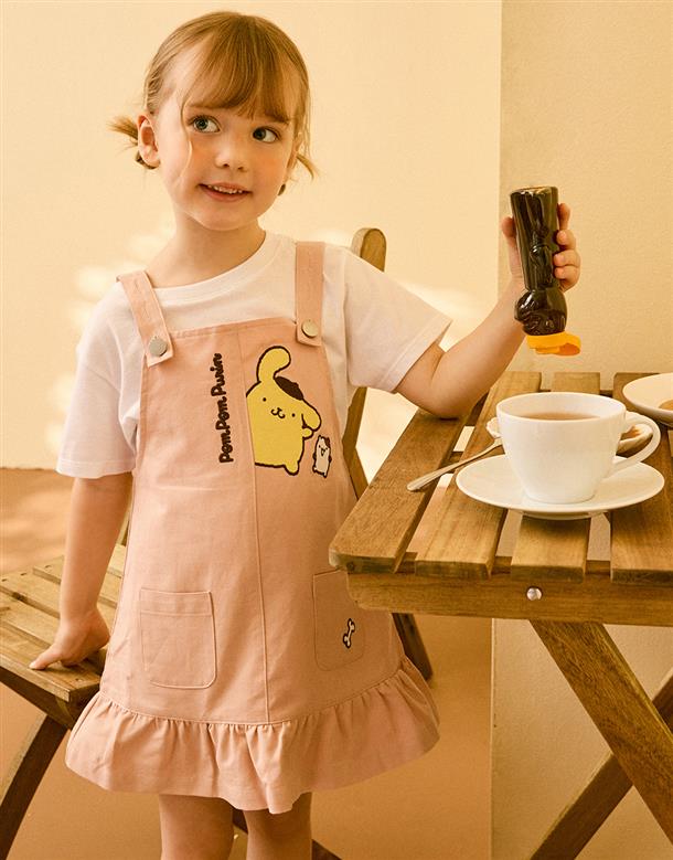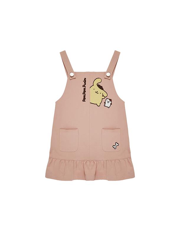 布丁狗吊帶裙,精緻電繡,撞色鈕釦設計,質感斜紋面料。