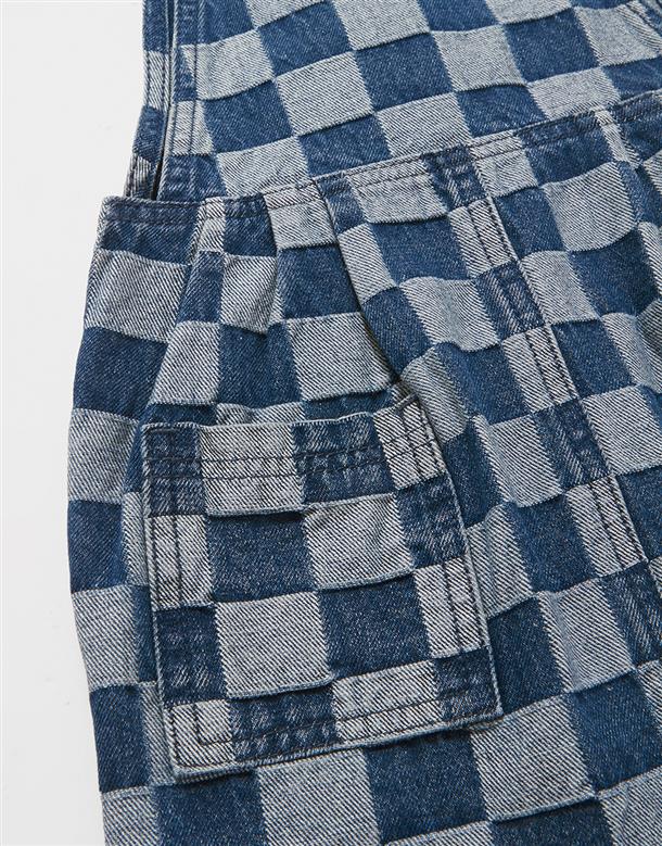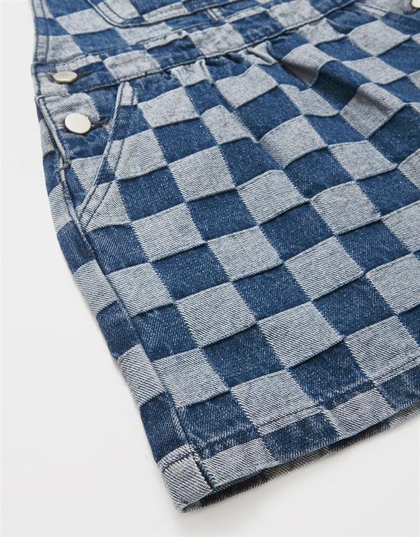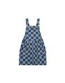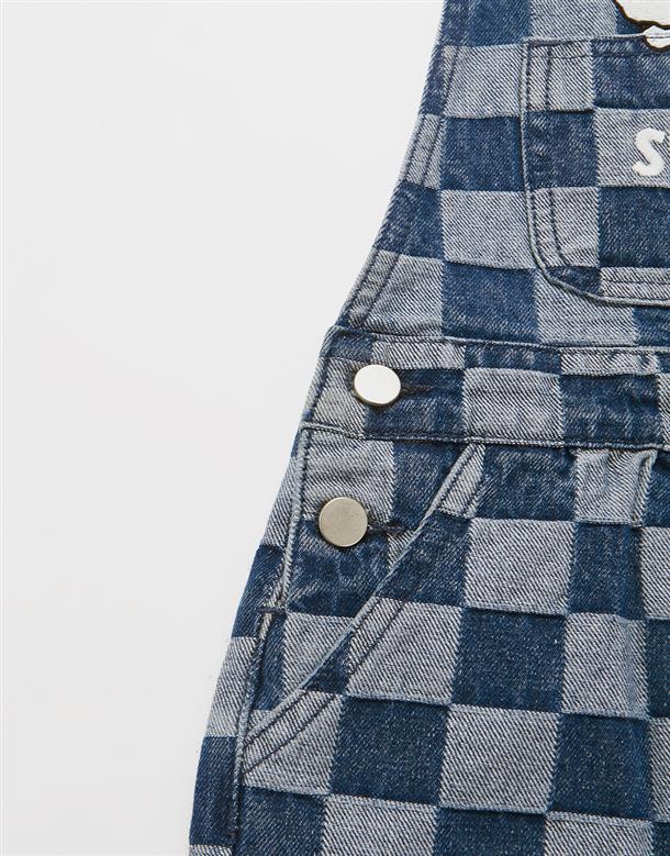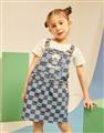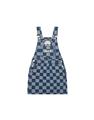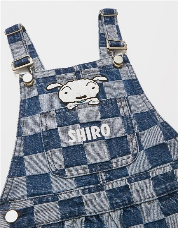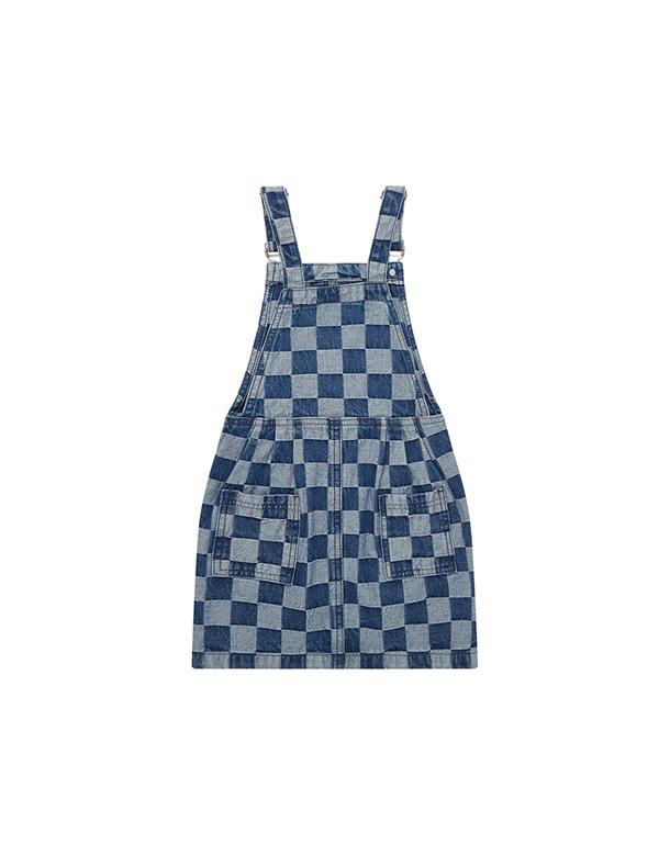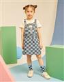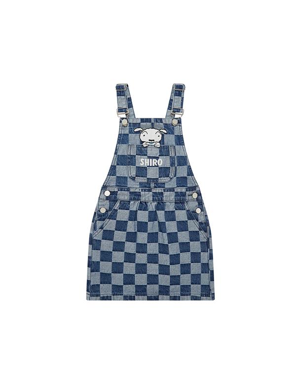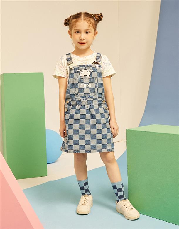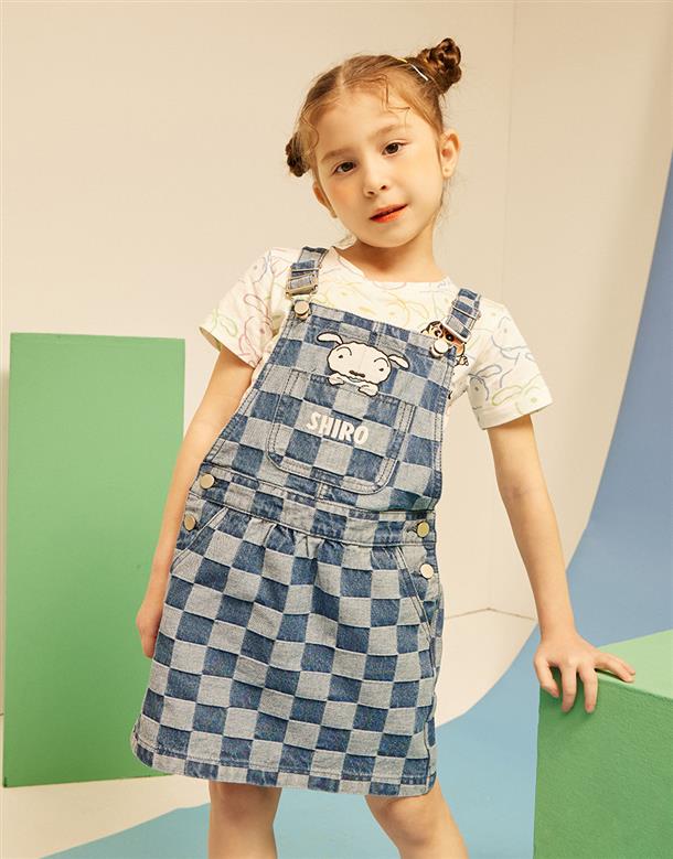 小白探頭電繡,流行格紋刷色,百搭牛仔吊帶裙。