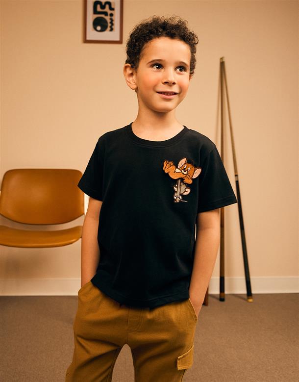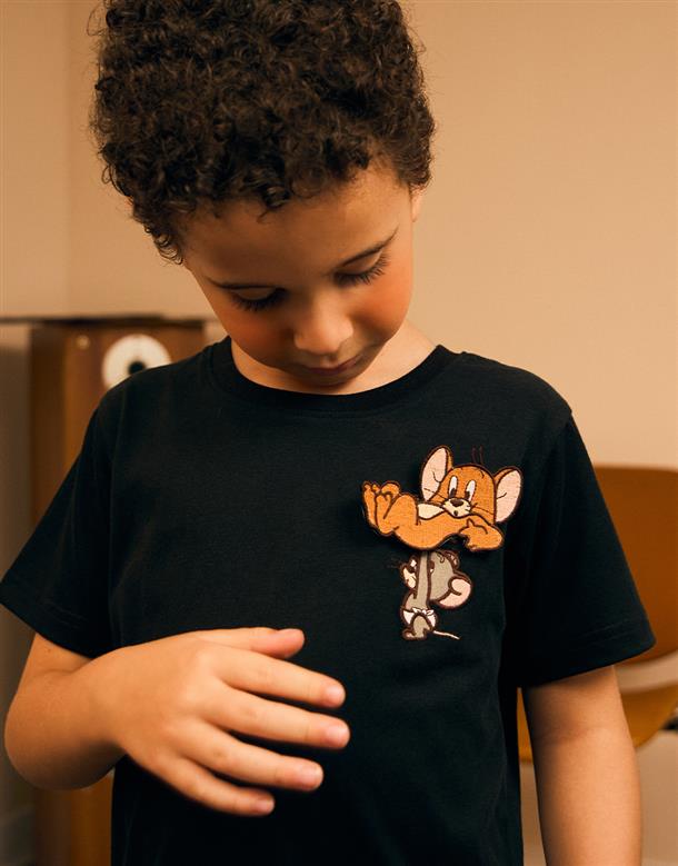 湯姆貓傑利鼠系列,趣味魔鬼氈,落肩棉質短TEE。
