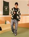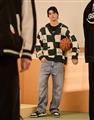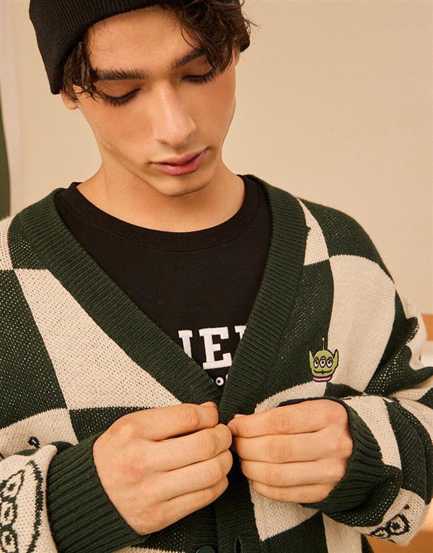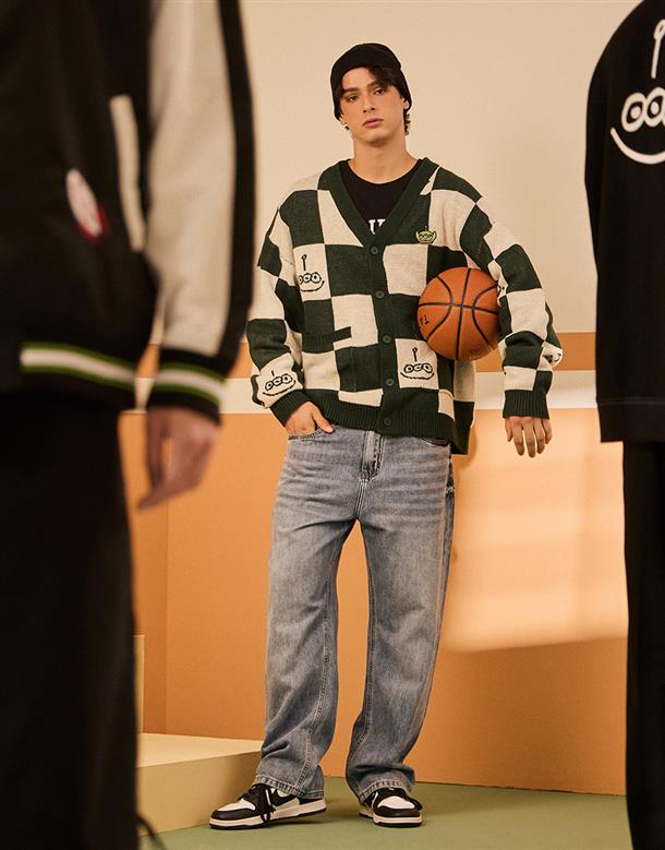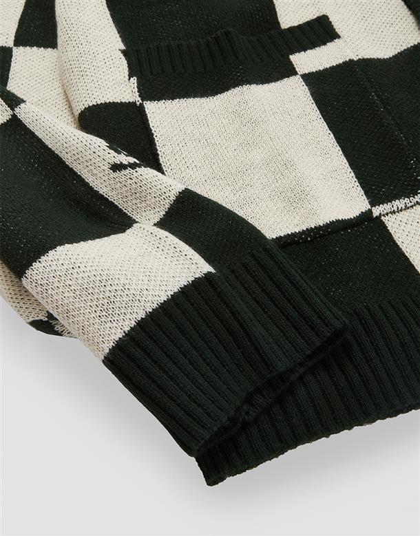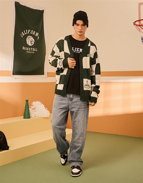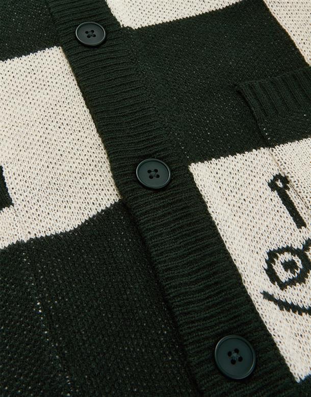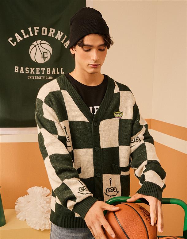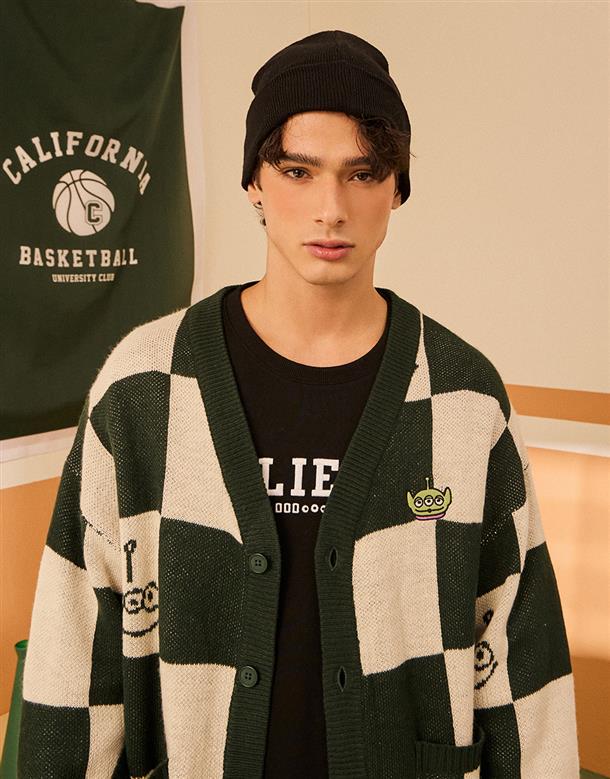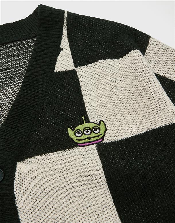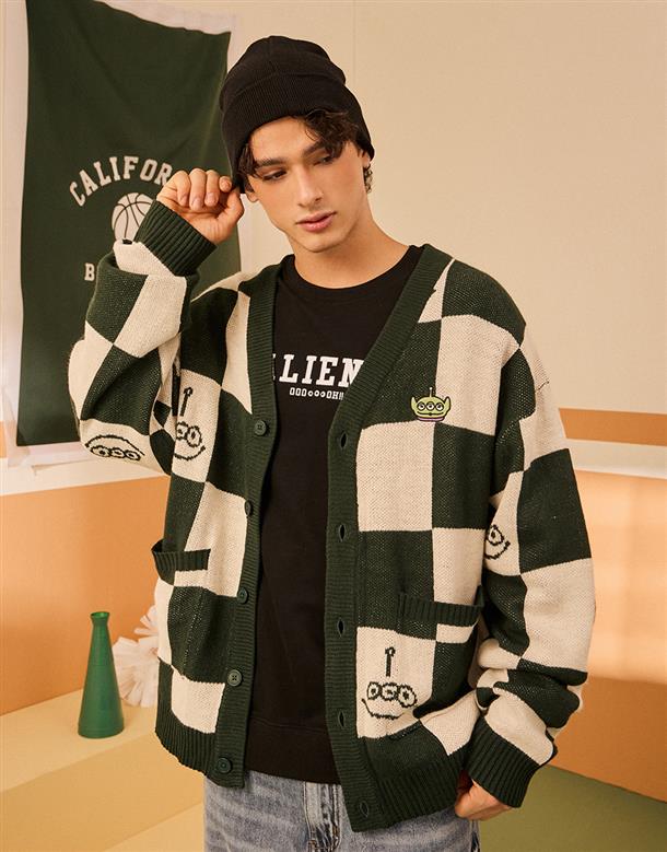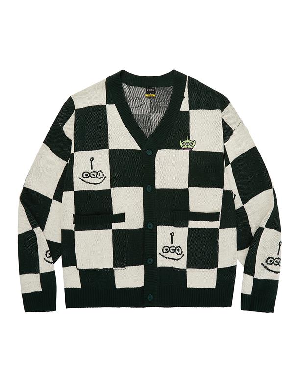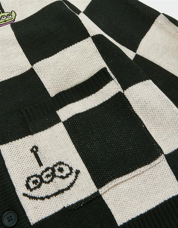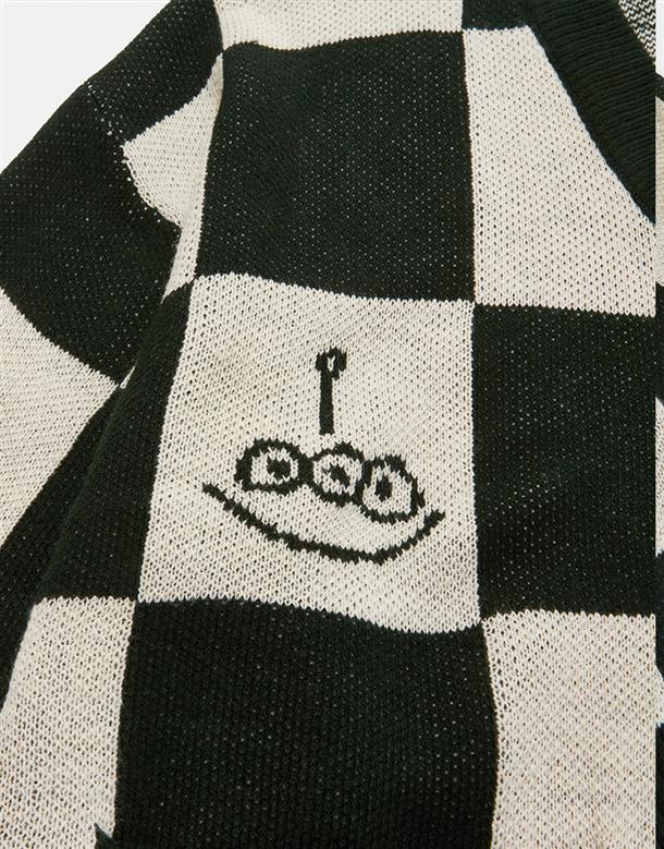 三眼怪棋盤格針織外套。