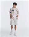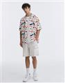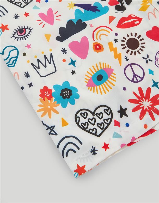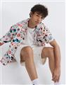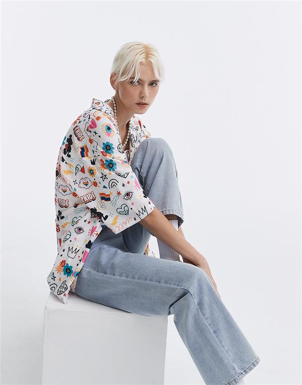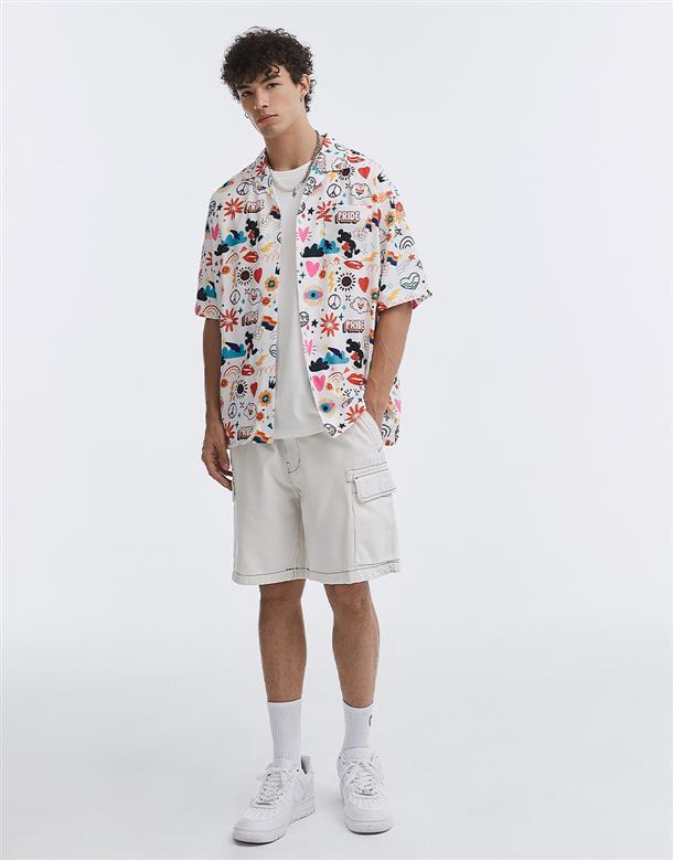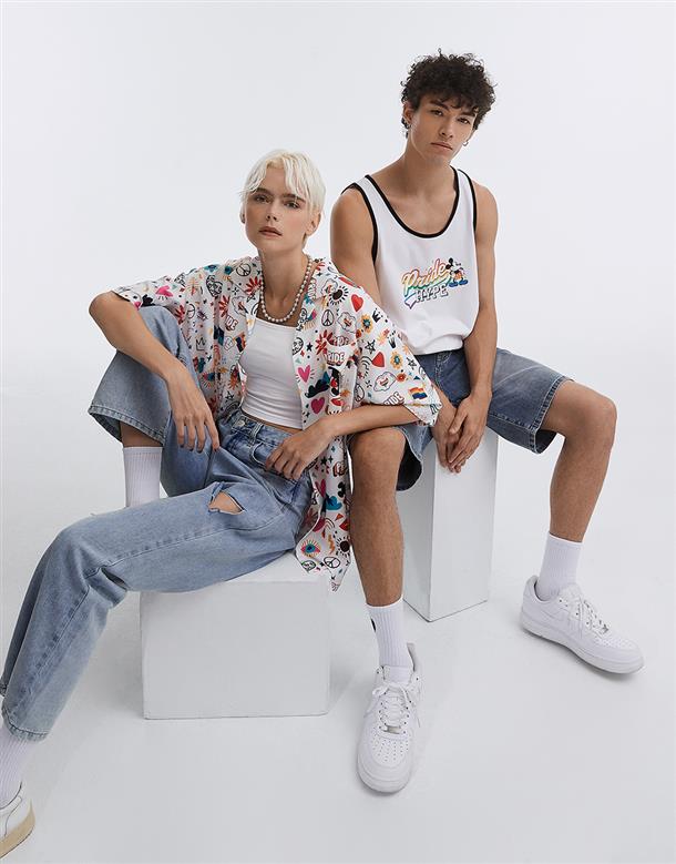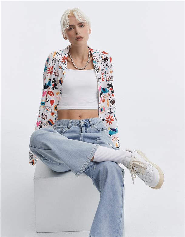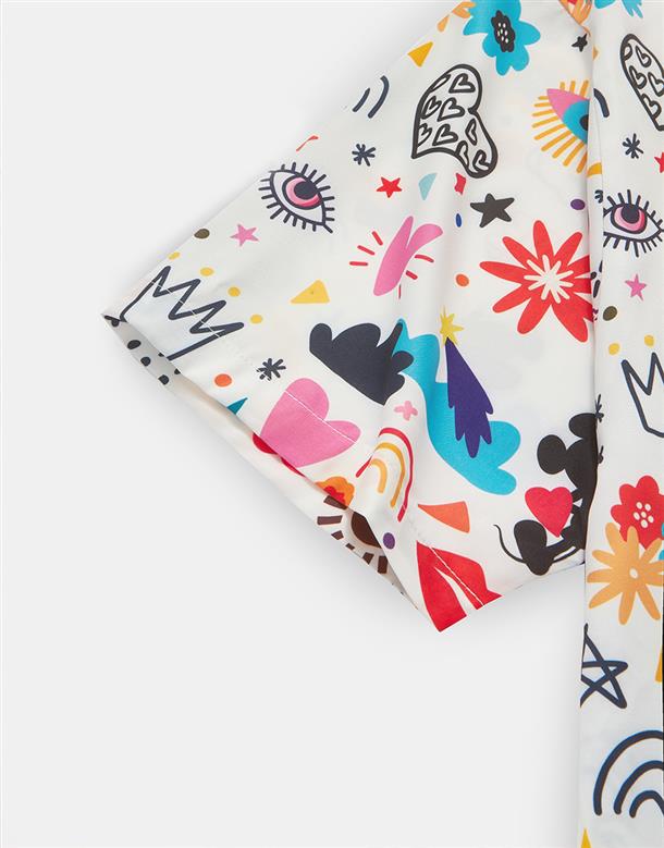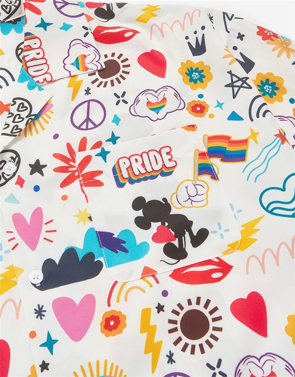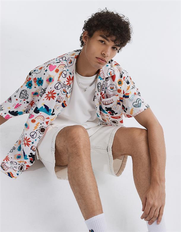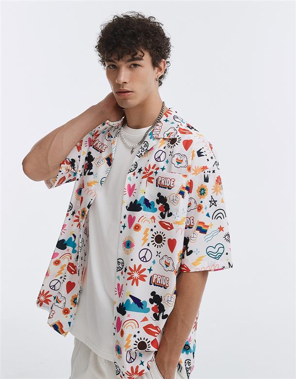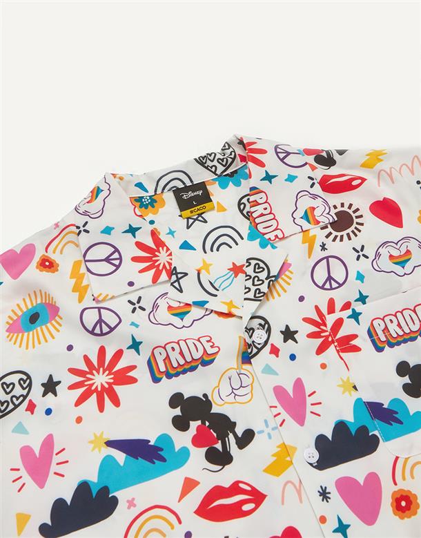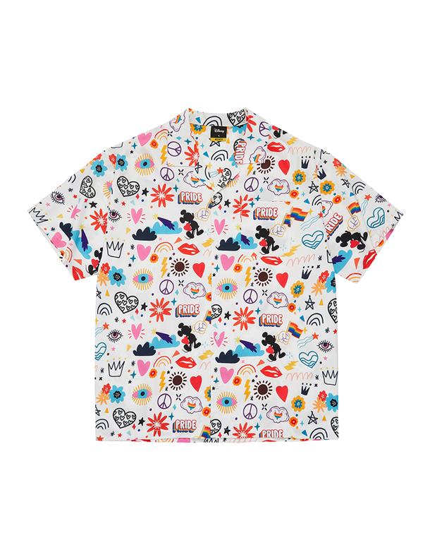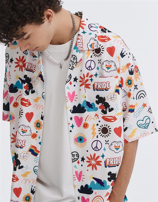 趣味彩虹米奇塗鴉滿版圖案設計,舒適穿搭古巴領開襟衫。