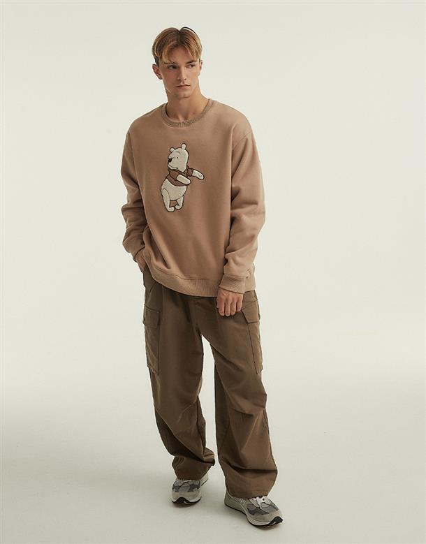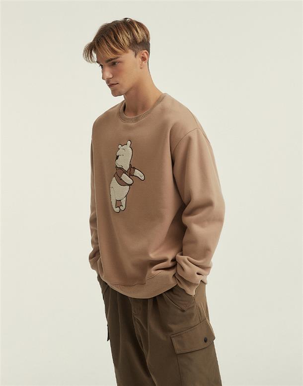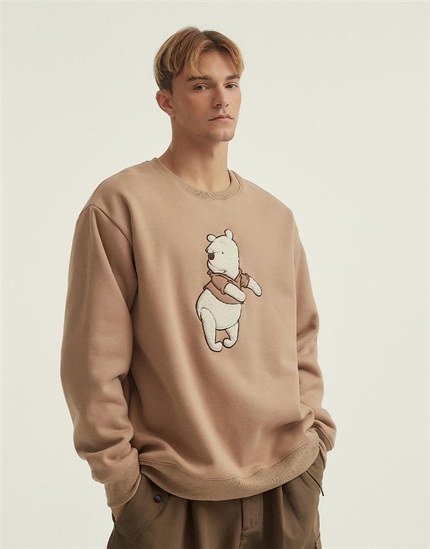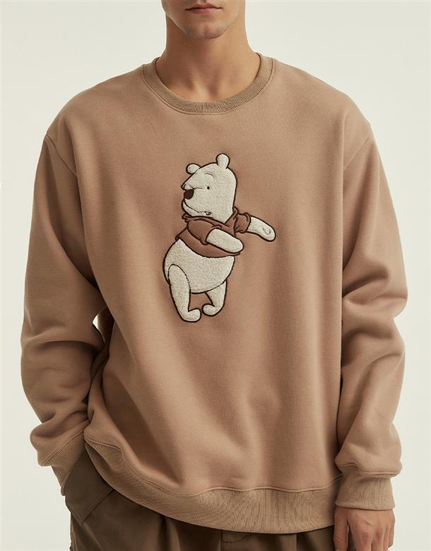 小熊維尼毛毛拼布設計,內層搖粒絨保暖大學TEE。