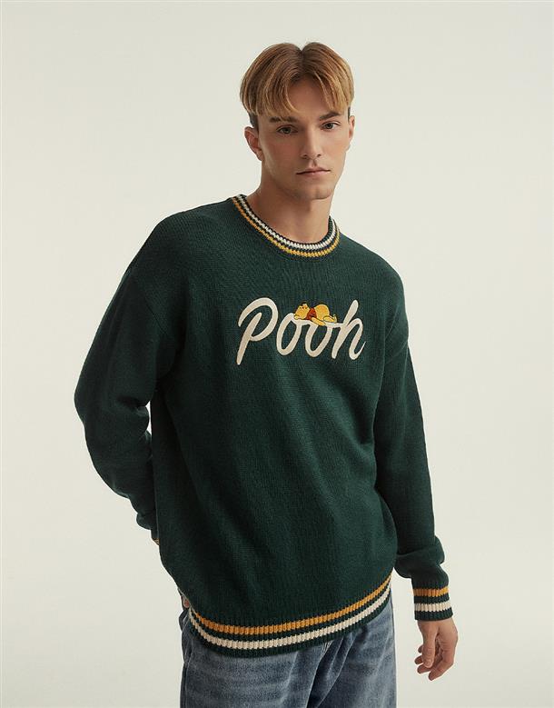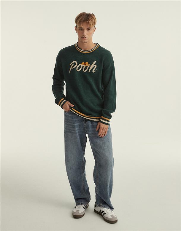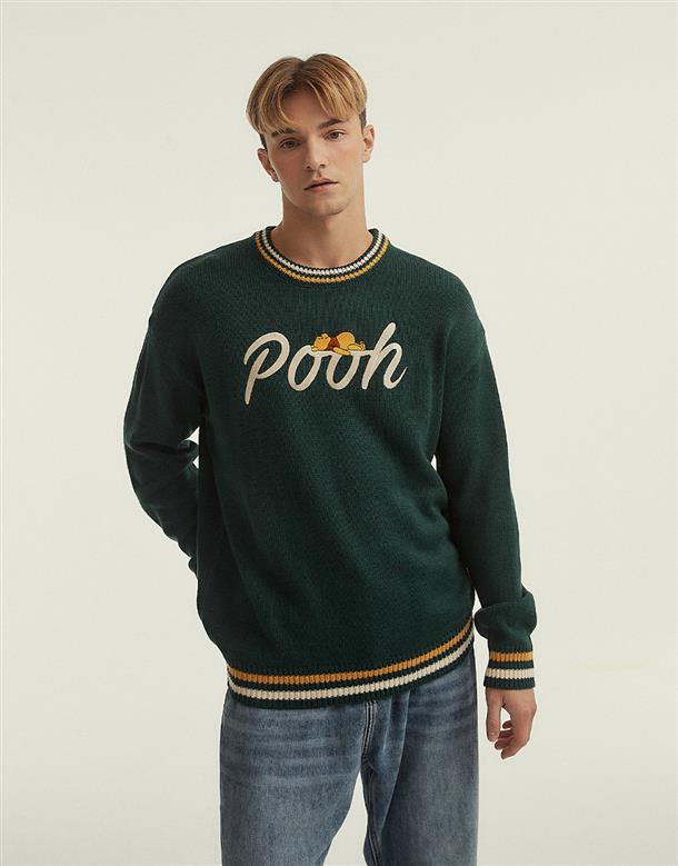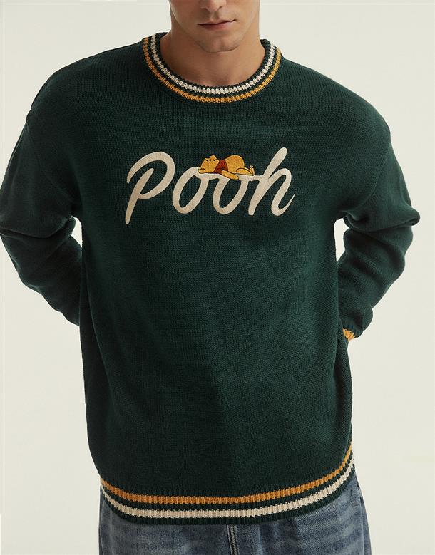 小熊維尼電繡設計,保暖落肩毛衣。