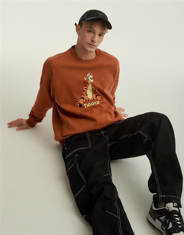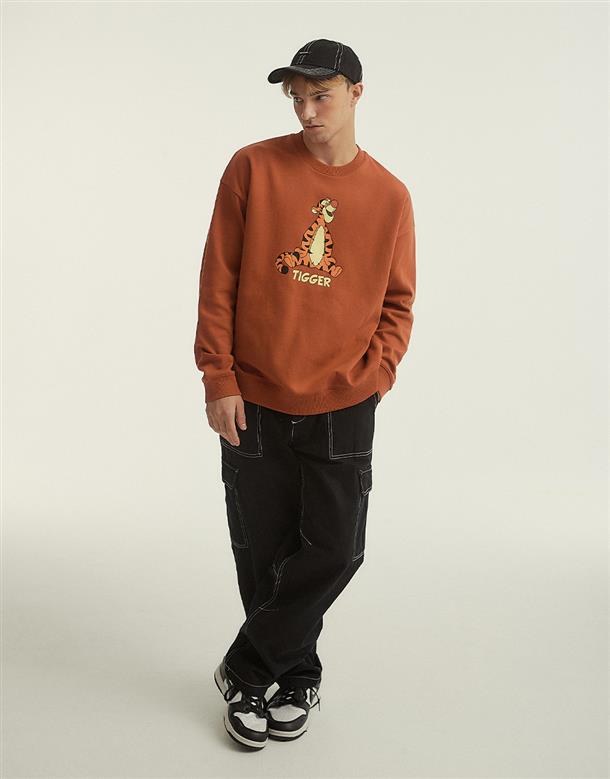 跳跳虎大圖印刷,落肩款式微寬鬆基本穿搭款大學TEE。