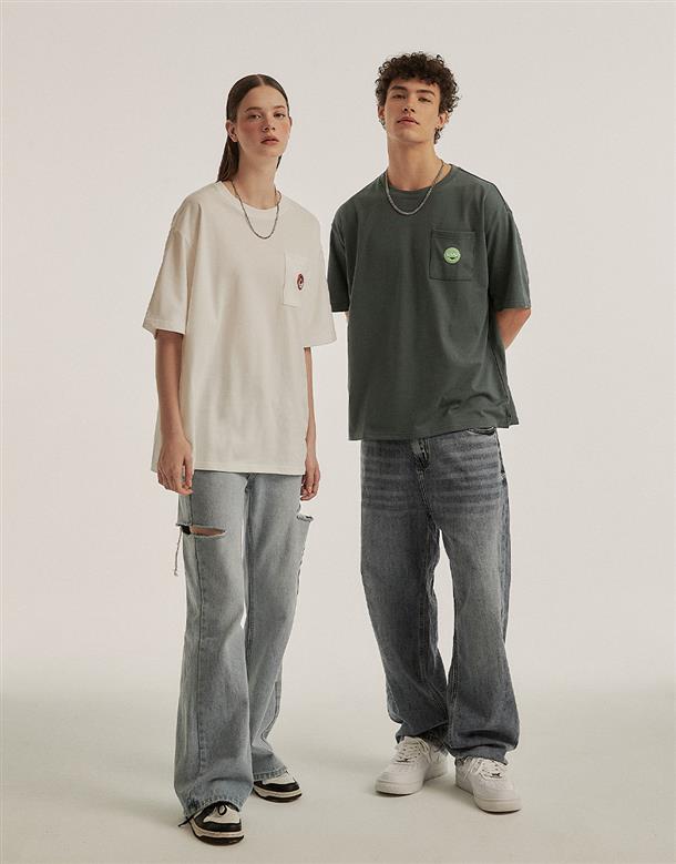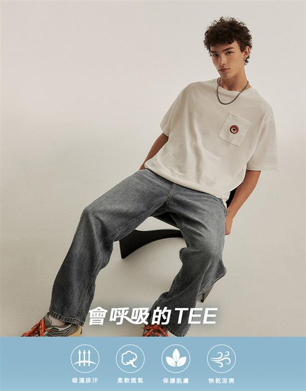 訂製機能透氣面料,內層採用吸濕排汗原紗織製而成,落肩寬鬆版熊抱哥設計短TEE。