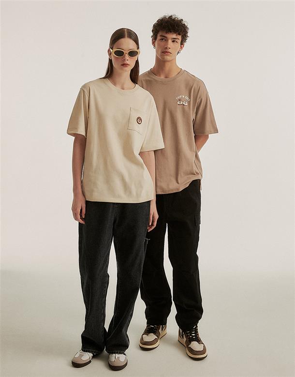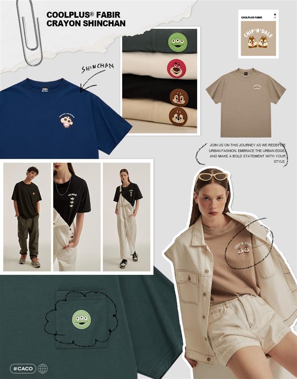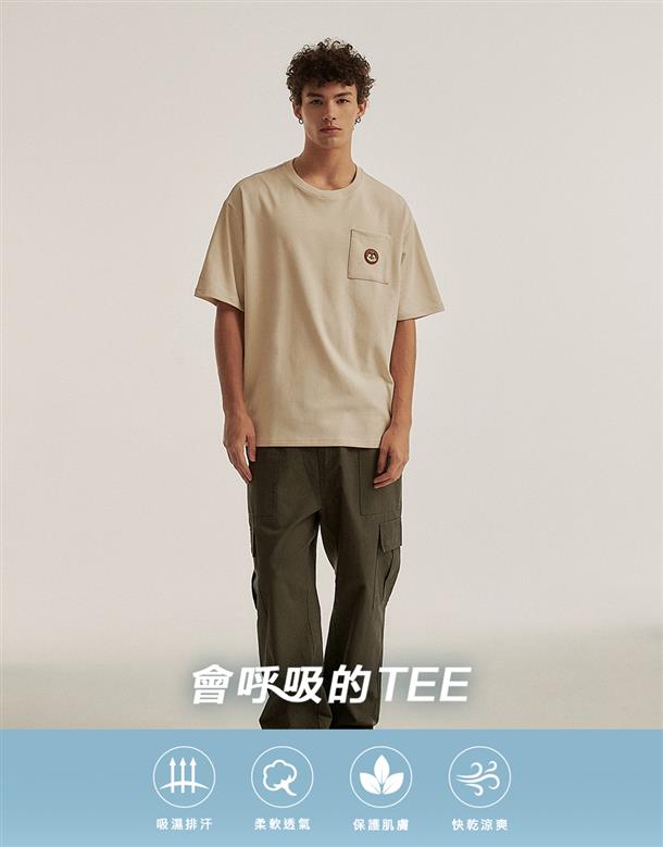 訂製機能透氣面料,內層採用吸濕排汗原紗織製而成,落肩寬鬆版奇奇設計短TEE。