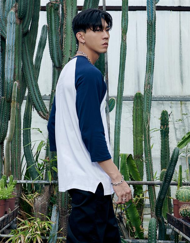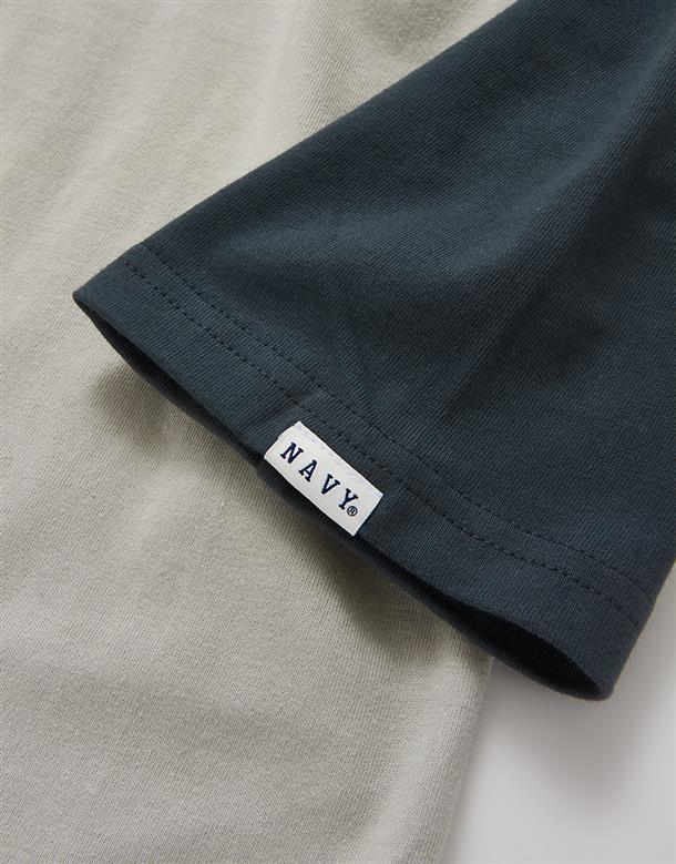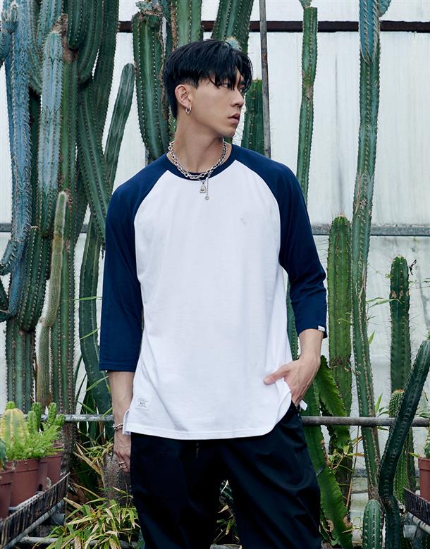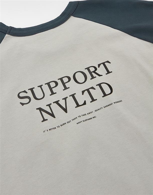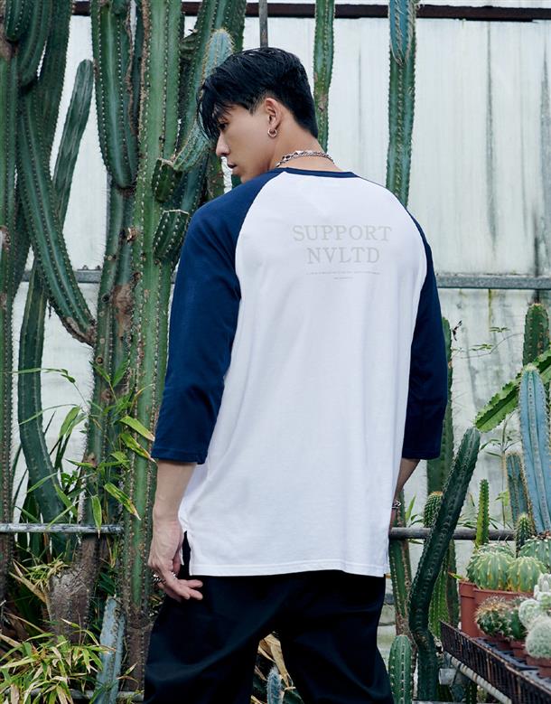 NV 品牌文字美國棉接袖拉克蘭八分TEE。
