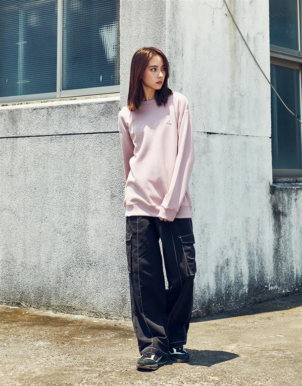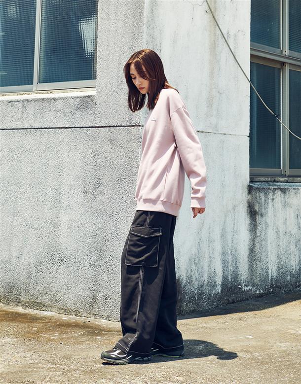 落肩款式微寬鬆基本穿搭款運動棉大學TEE。