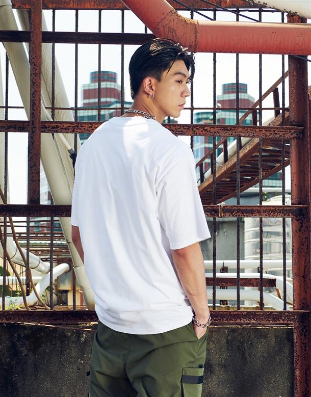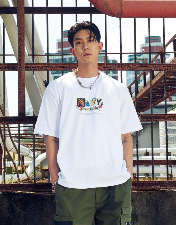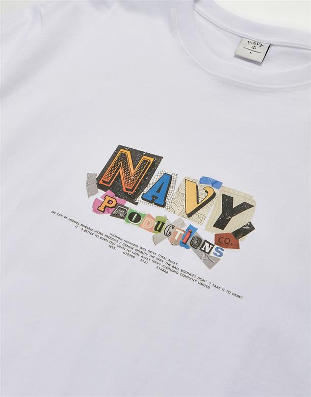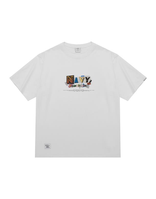 NAVY 潮流拼貼文字印刷,質感搭配短TEE。