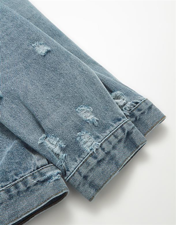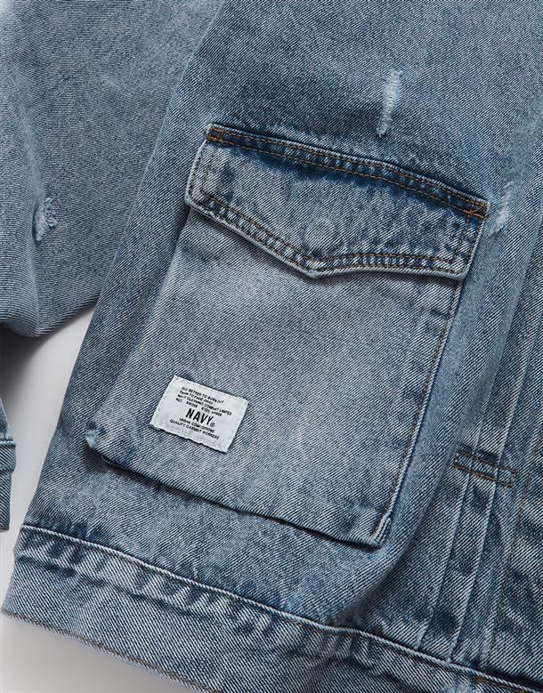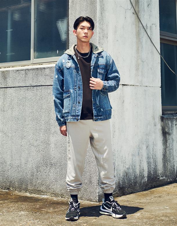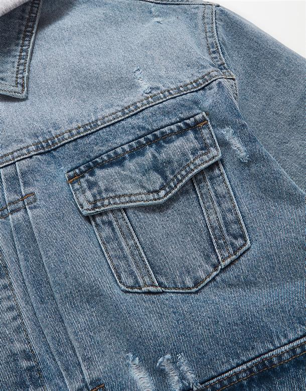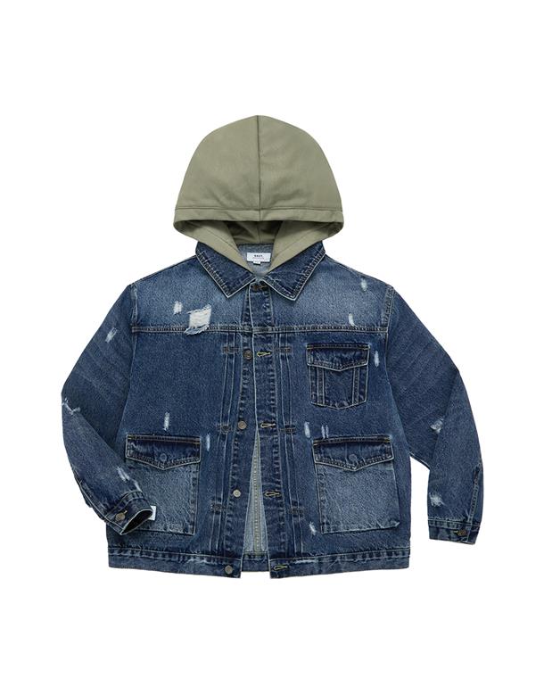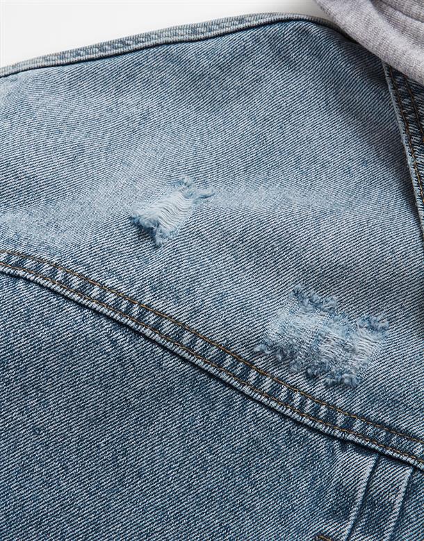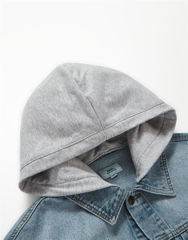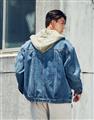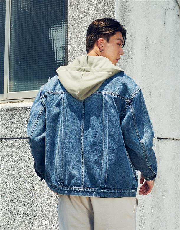 秋冬必備經典百搭洗水可拆帽牛仔落肩外套。