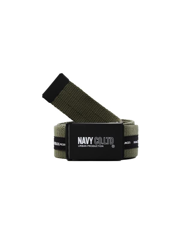 NAVY 品牌文字印刷款百搭帆布皮帶。