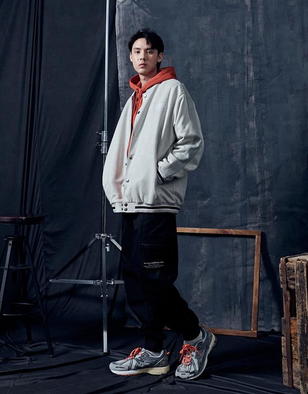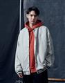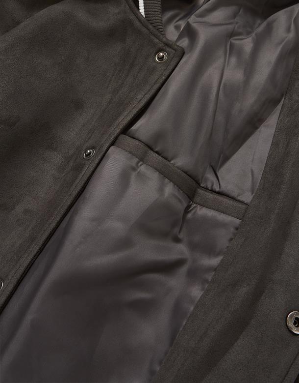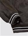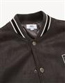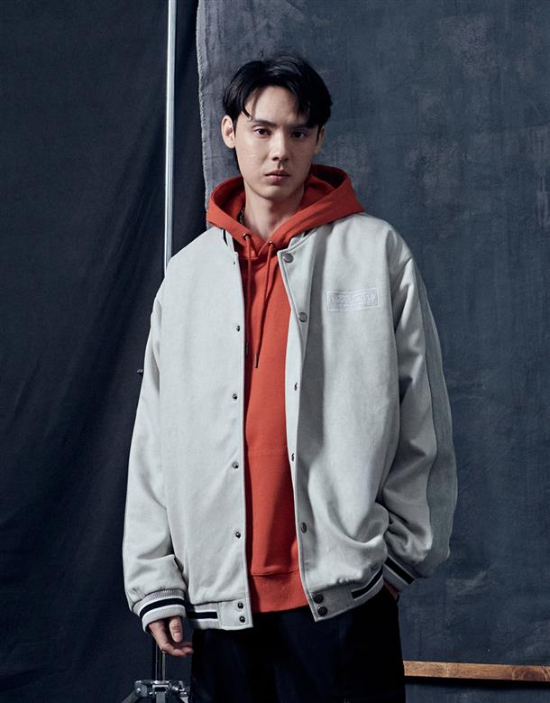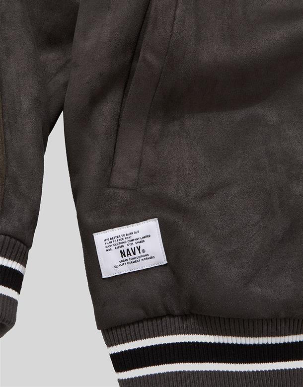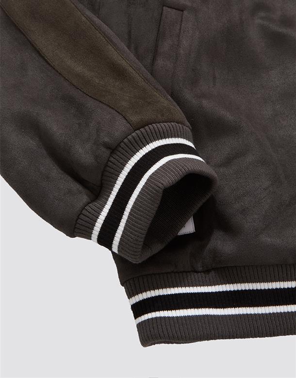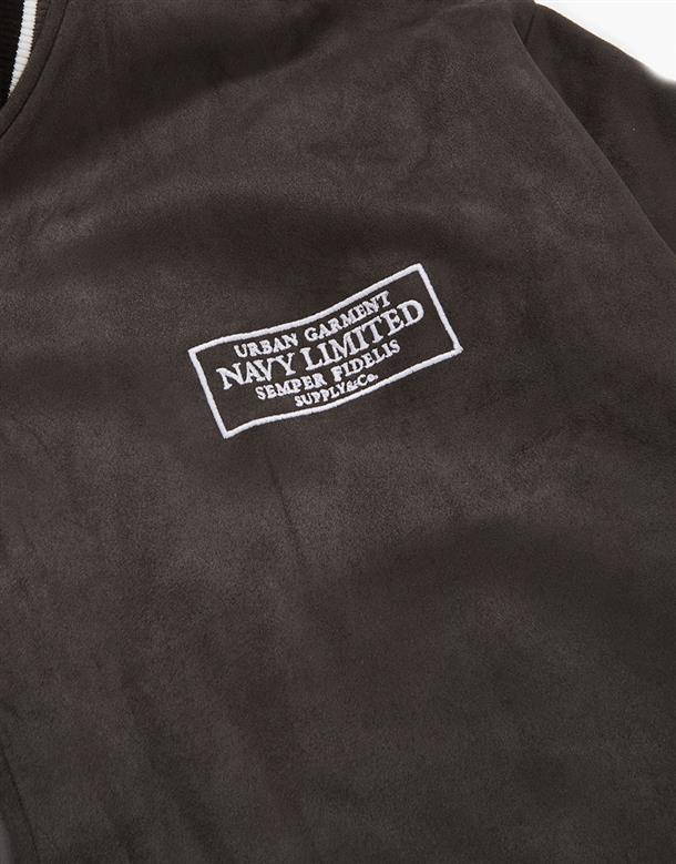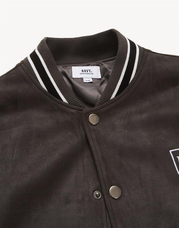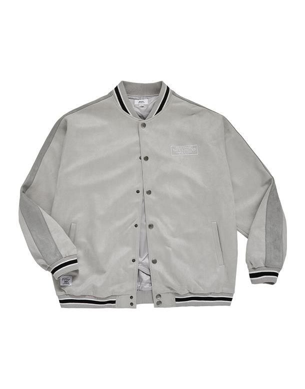 特殊麂絨面料,袖條撞色設計,胸口電繡棒球外套。