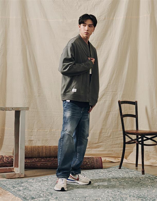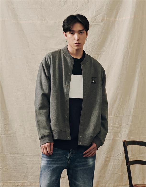 造型穿搭款輕量運動棉材質排扣棒球外套。