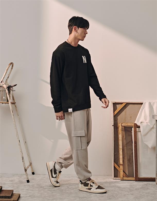 落肩款式微寬鬆穿搭貼布繡工藝大學TEE。