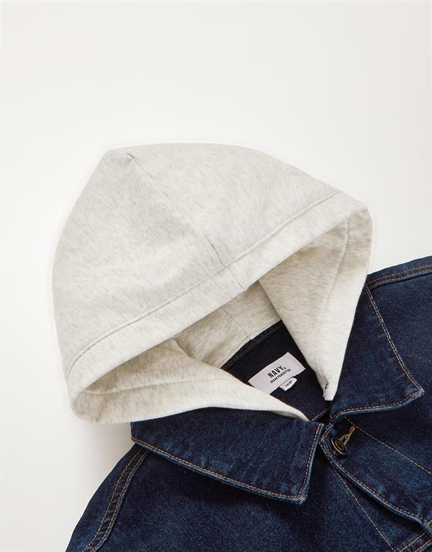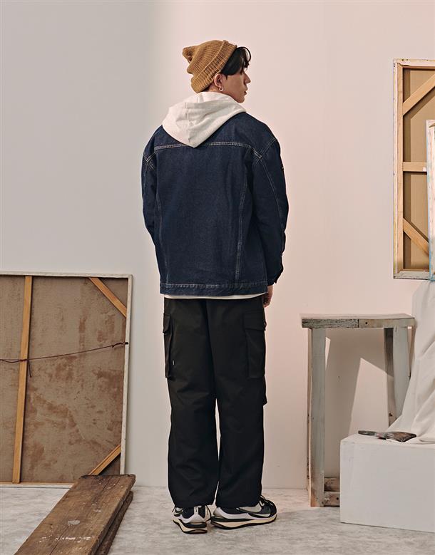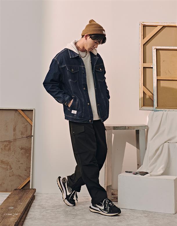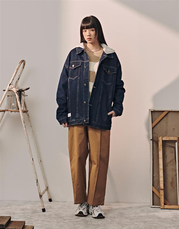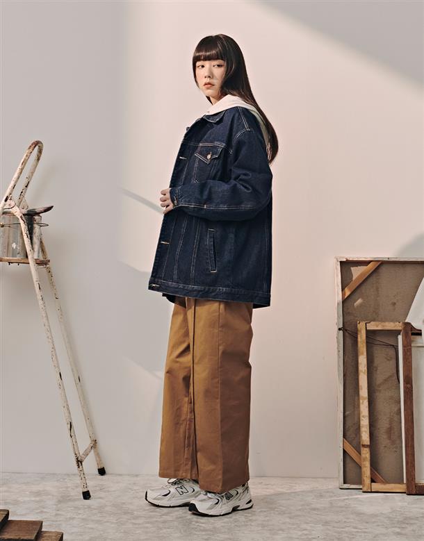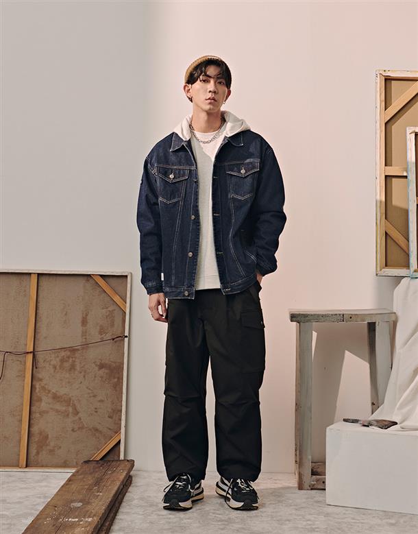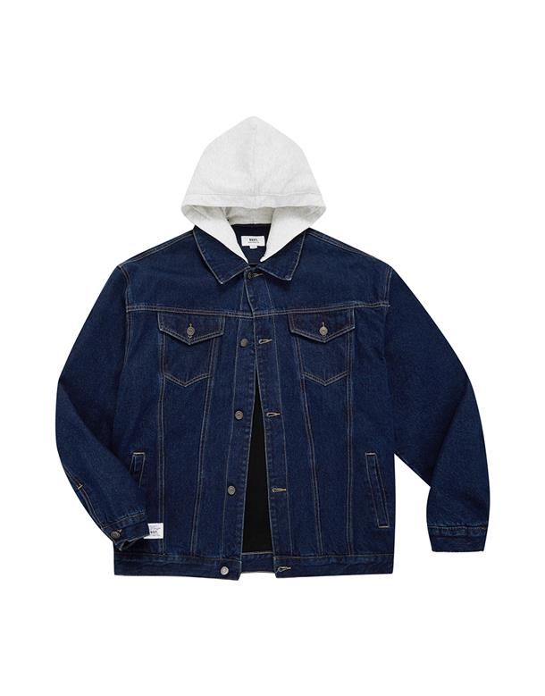 秋冬必備經典百搭洗水可拆帽牛仔落肩外套。