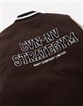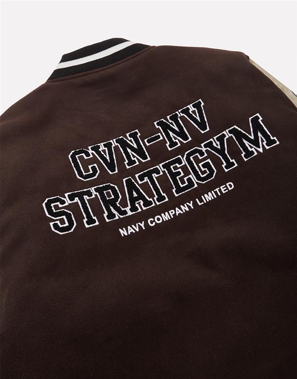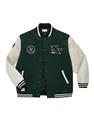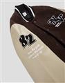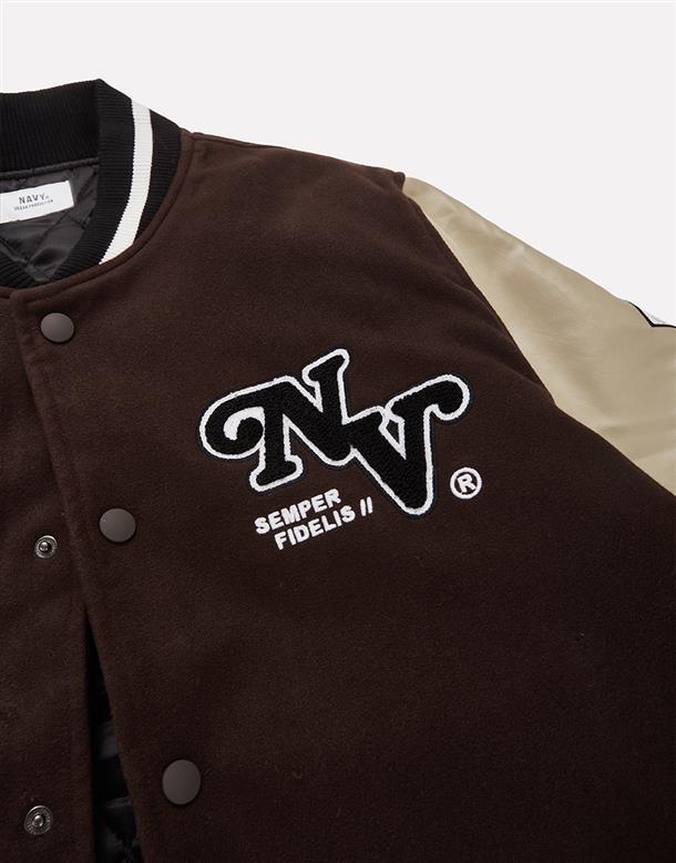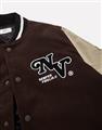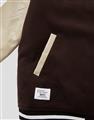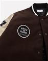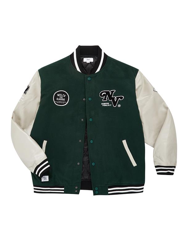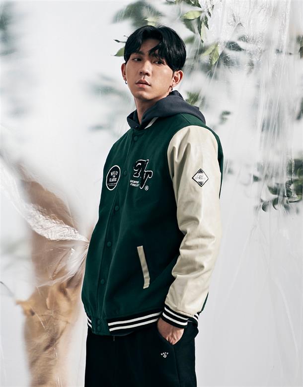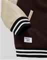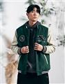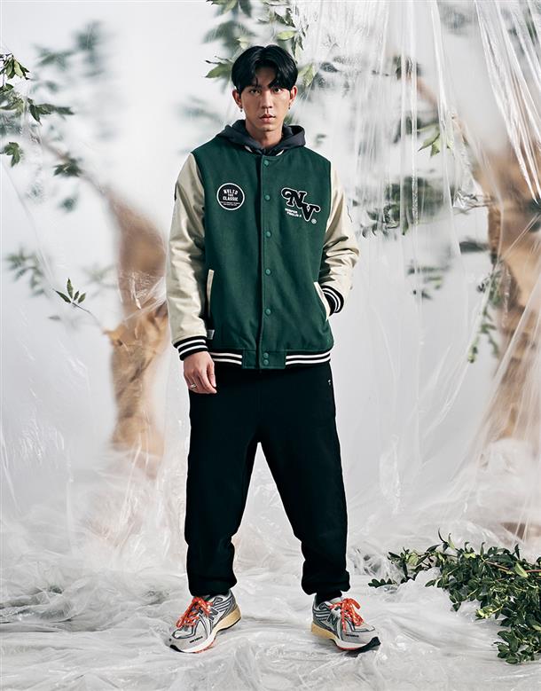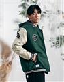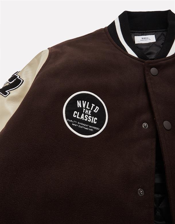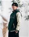 街頭造型穿搭必備皮革袖保暖鋪棉棒球外套。