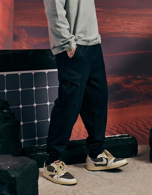 秋冬厚磅不倒絨工裝口袋棉長褲。