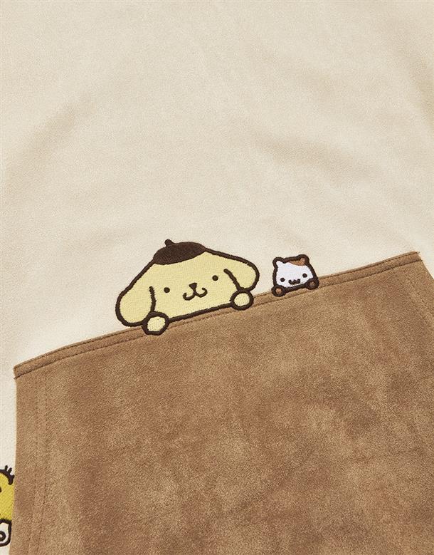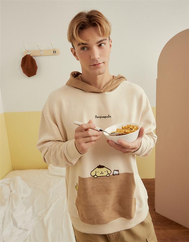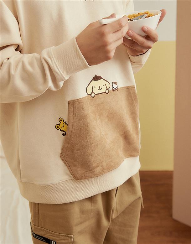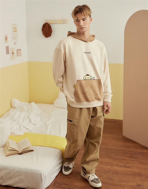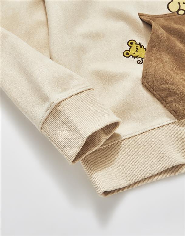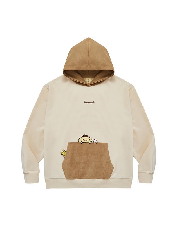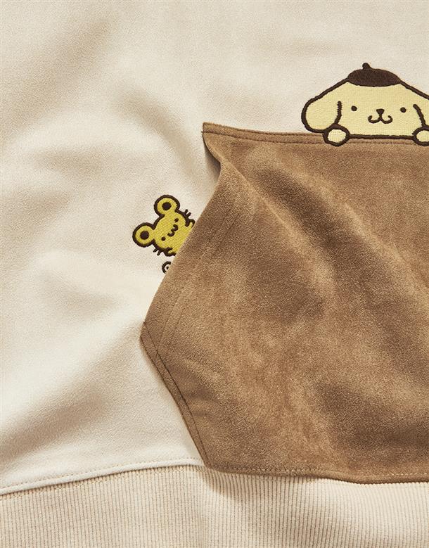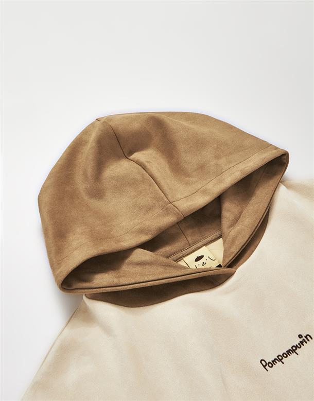 布丁狗可愛角色電繡,舒適麂皮絨撞色帽TEE。