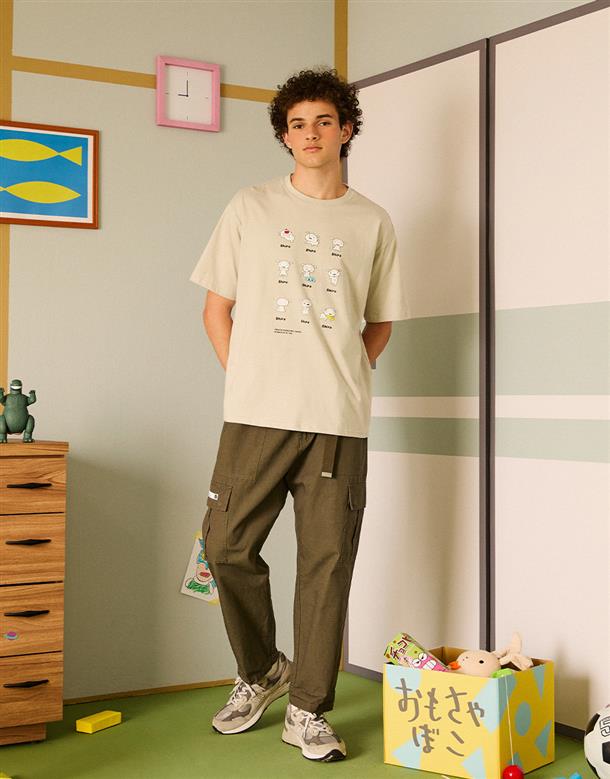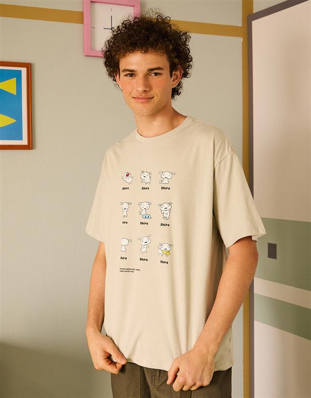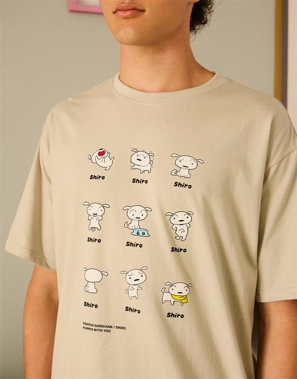 小白日常系列高品質數位印,舒適純棉落肩短T。