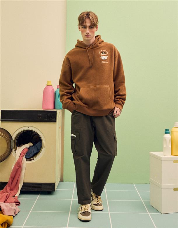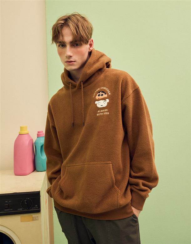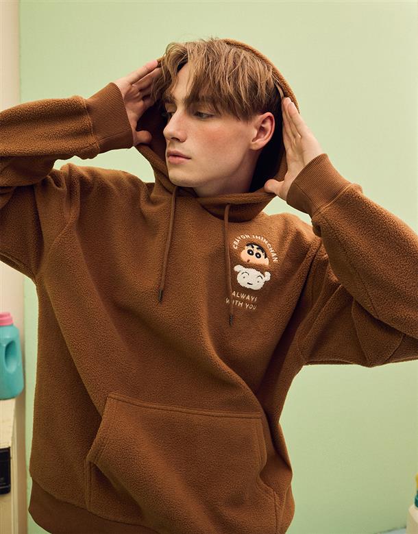 小新小白精緻工藝,高品質舒棉絨落肩帽TEE。