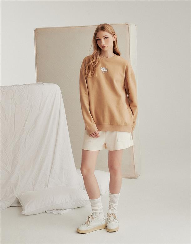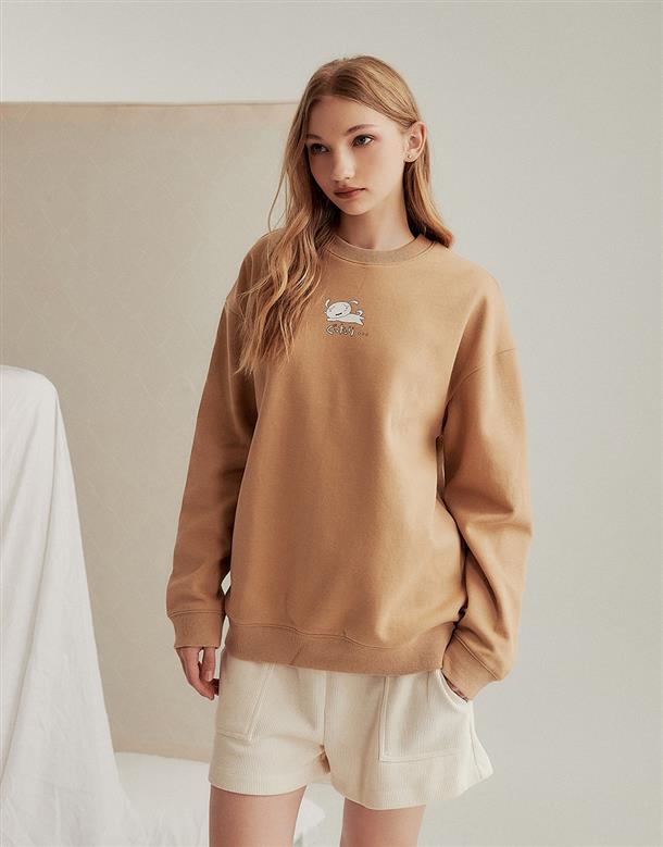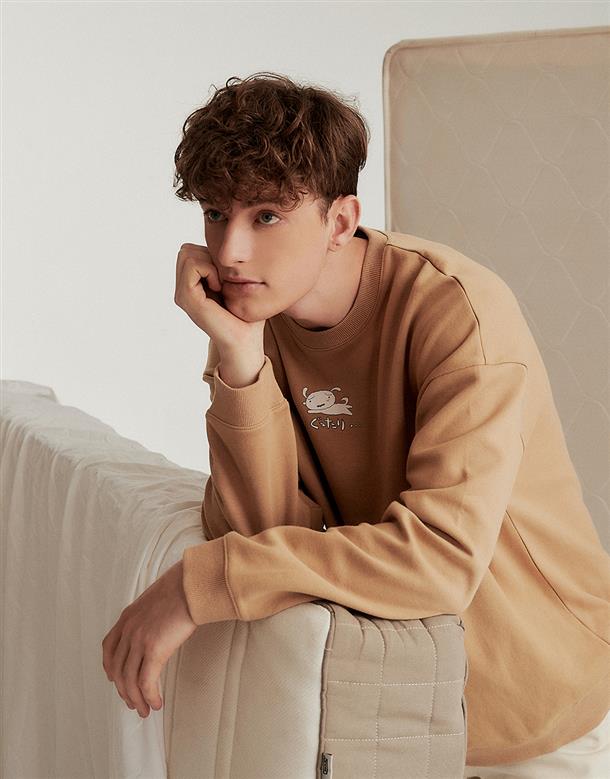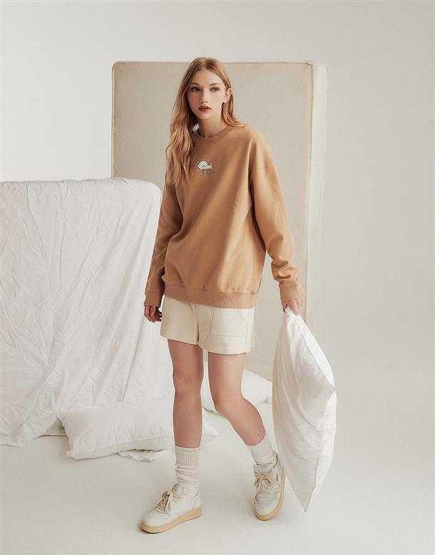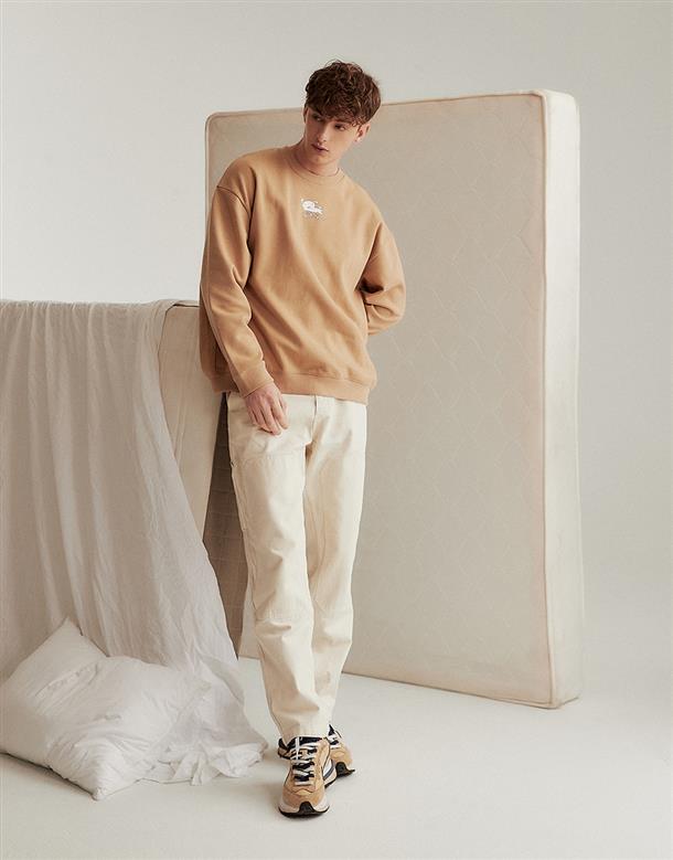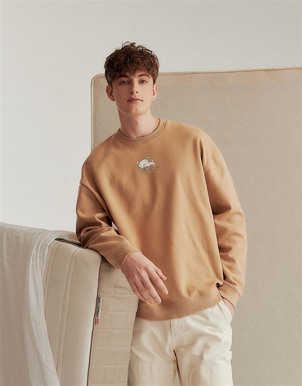 小白躺平印刷,落肩款式微寬鬆基本穿搭款大學TEE。
