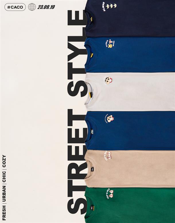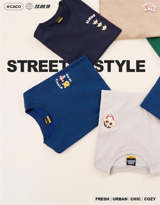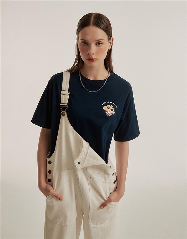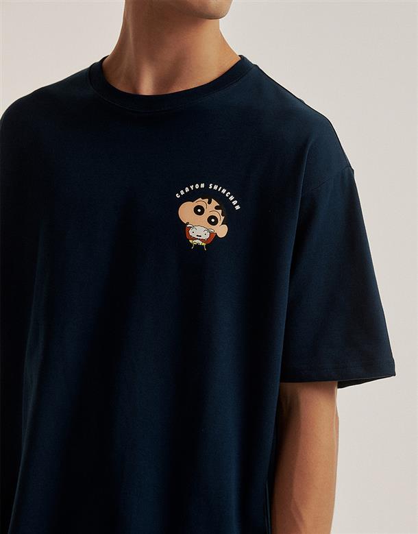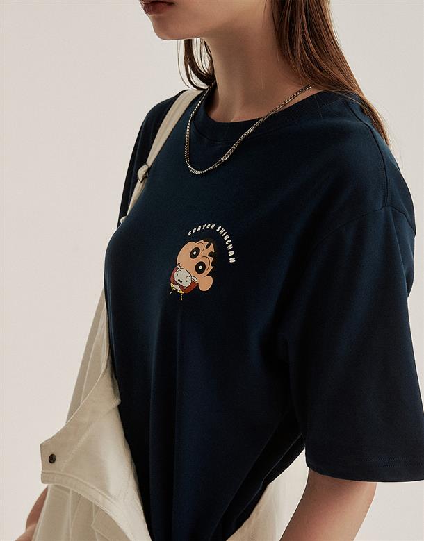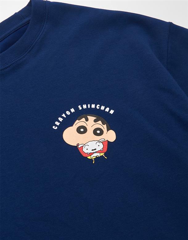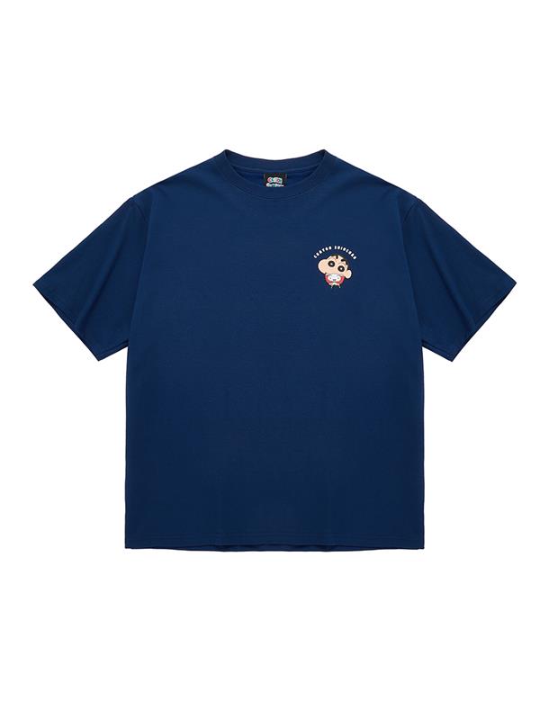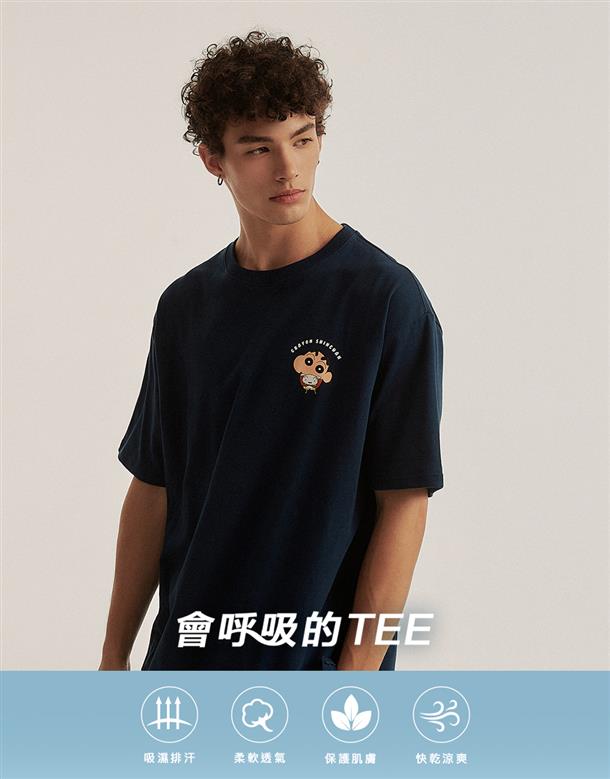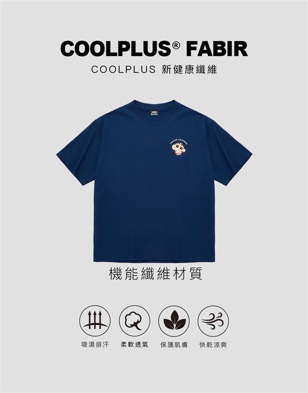 訂製機能透氣面料,內層採用吸濕排汗原紗織製而成,落肩寬鬆版蠟筆小新設計短TEE。