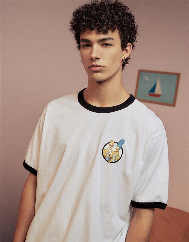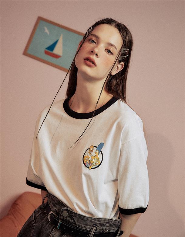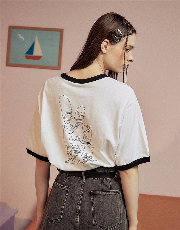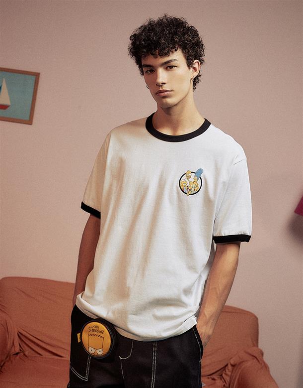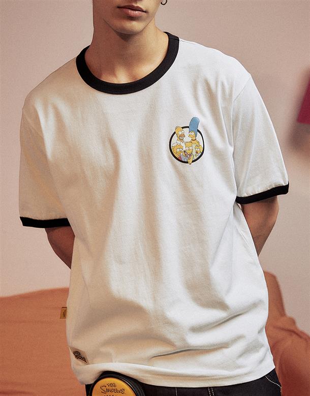 辛普森系列,辛普森家族圖案設計,台灣製舒適美國棉質短袖撞色滾邊TEE恤。