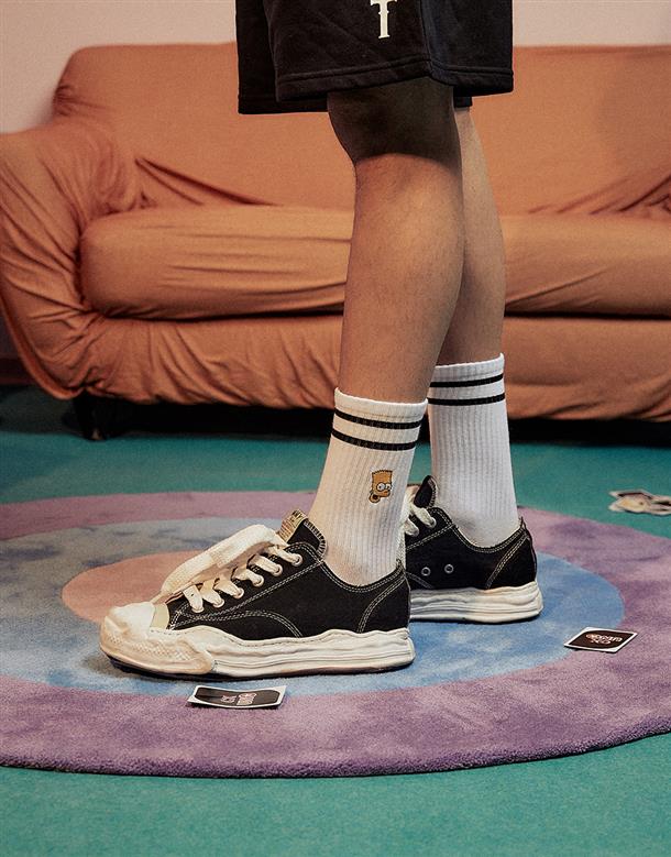辛普森壩子黑白橫條中長襪,穿搭中性款。