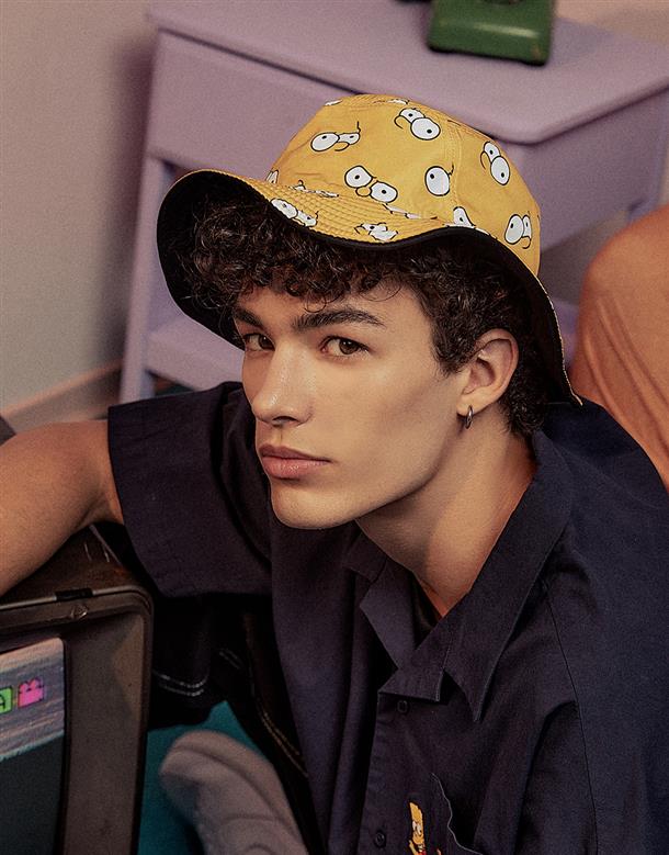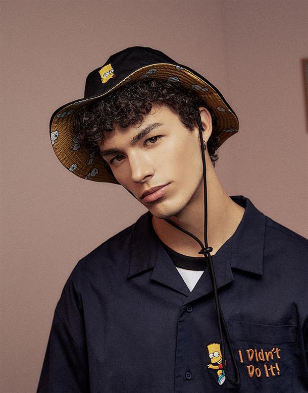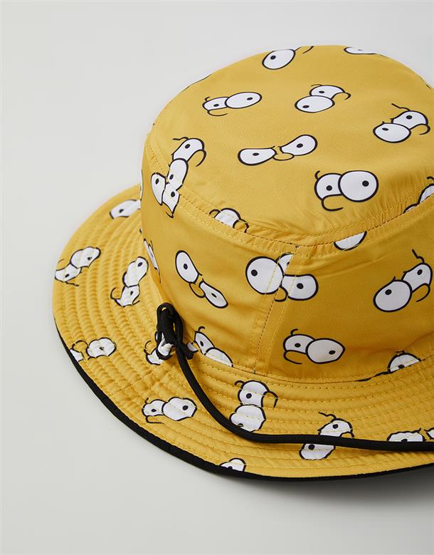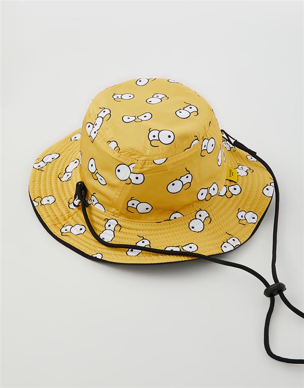辛普森壩子眼睛滿版印花圖案,雙面設計,可拆帽繩款式漁夫帽。