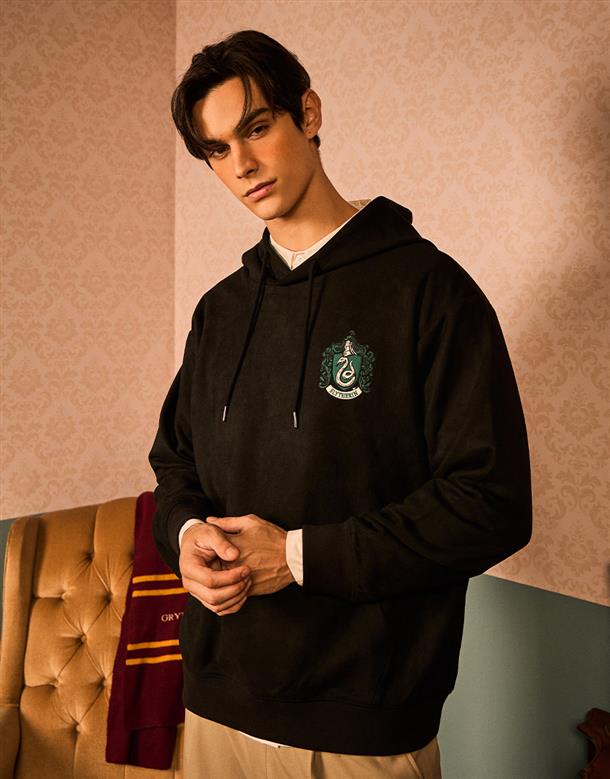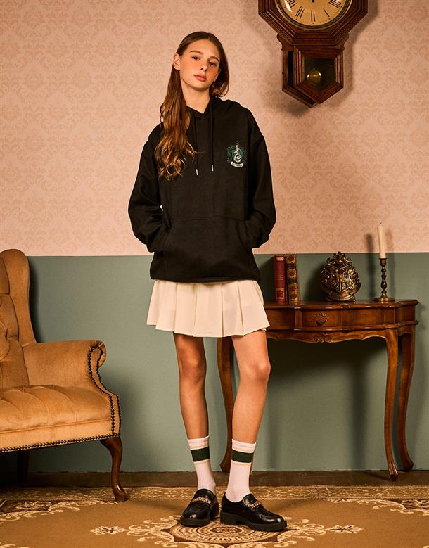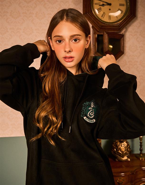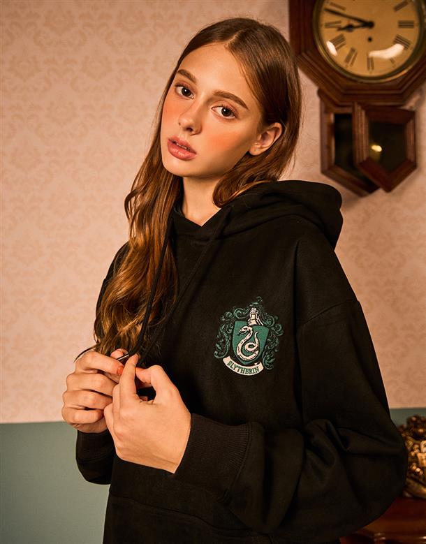 哈利波特系列,史萊哲林學院電繡徽章,帽內配色麂皮絨舒適帽TEE。