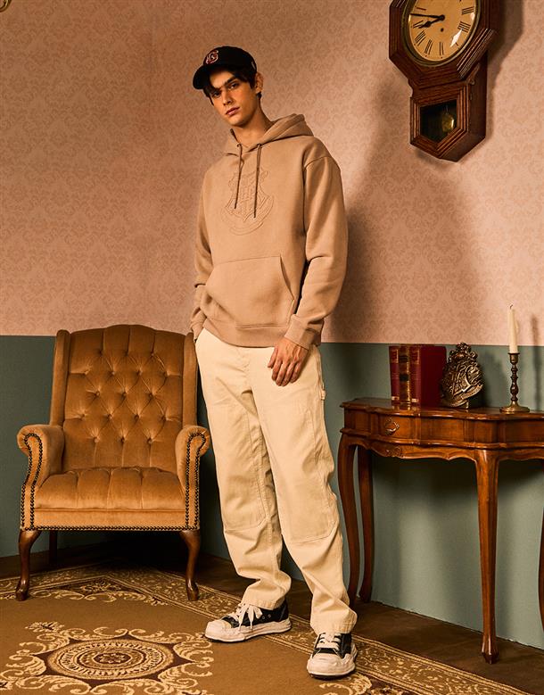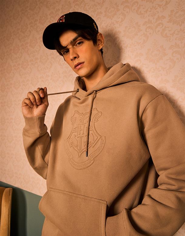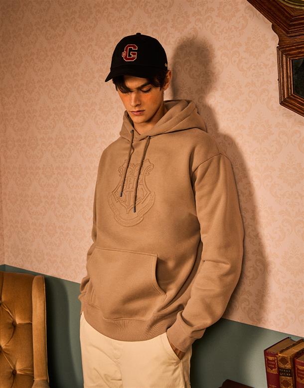 哈利波特系列,霍格華茲學院鋼印壓紋設計,寬鬆刷毛帽TEE。