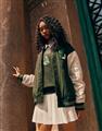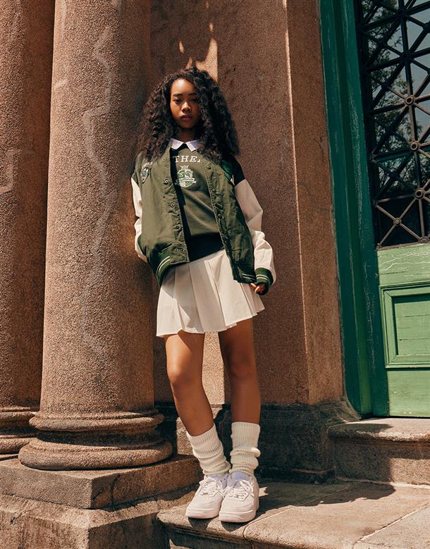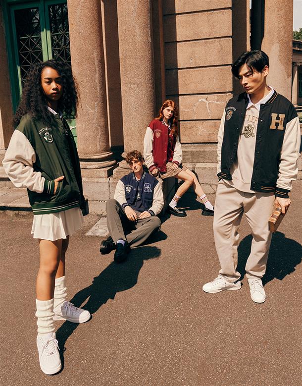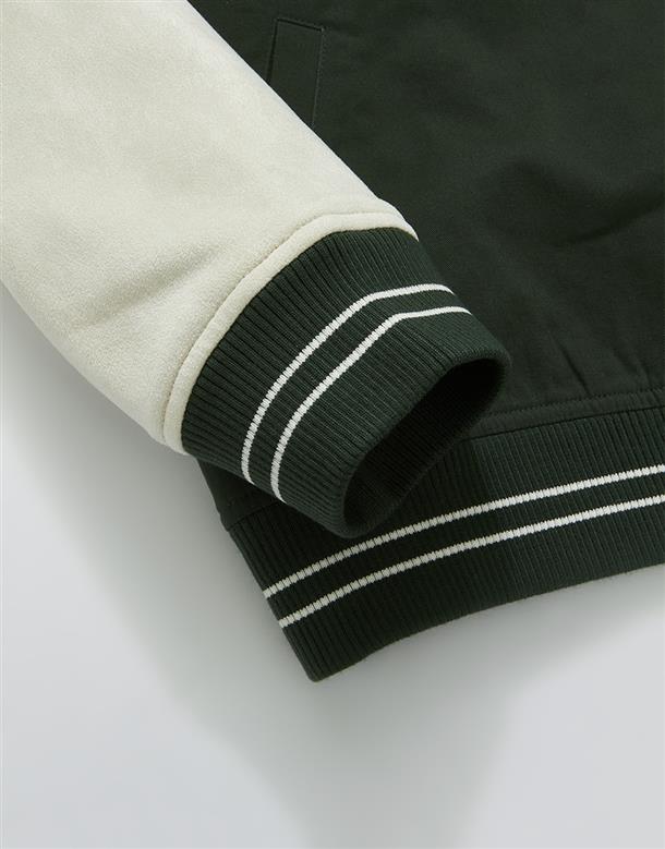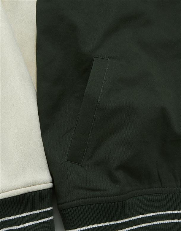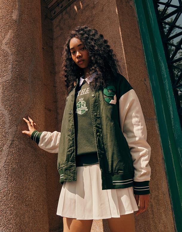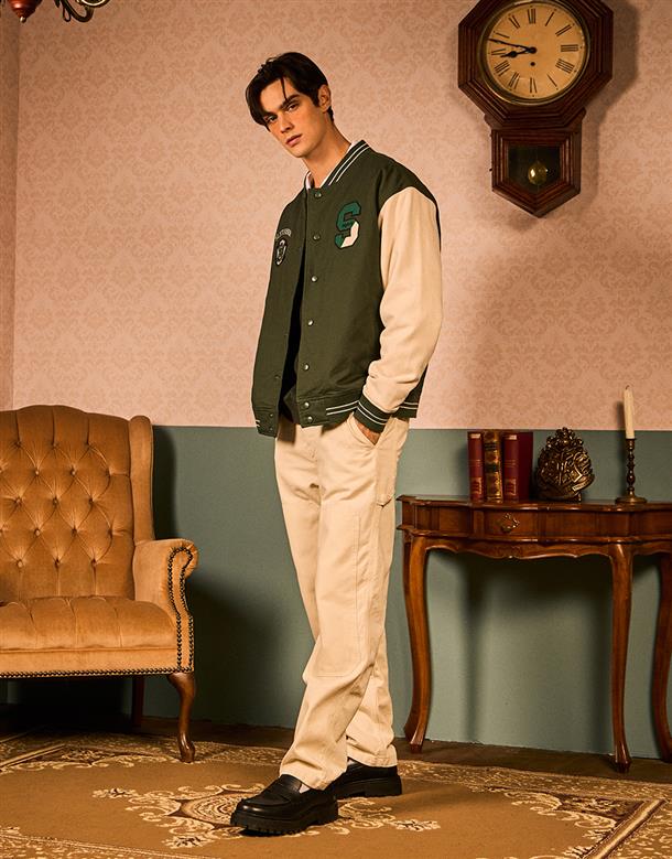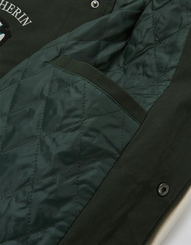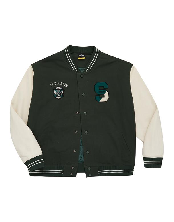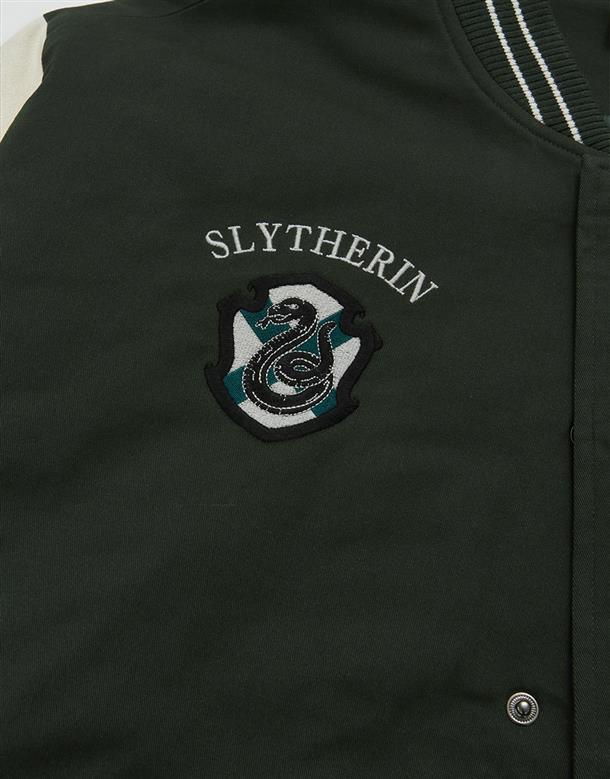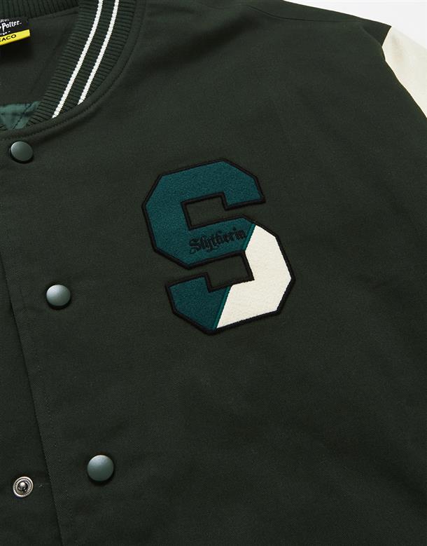 哈利波特系列,史萊哲林撞色設計,彈性斜紋微落肩棒球外套。