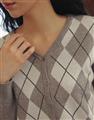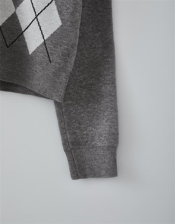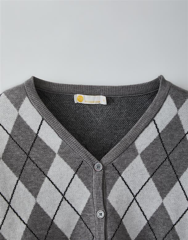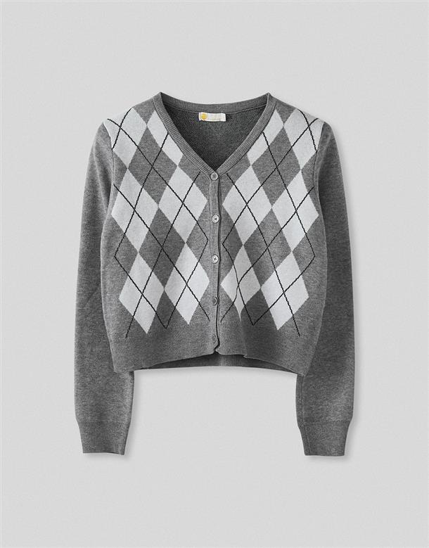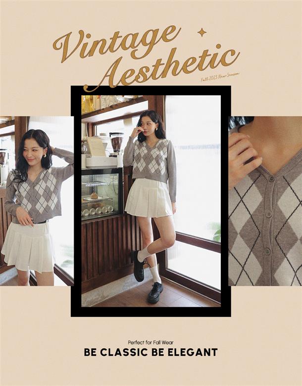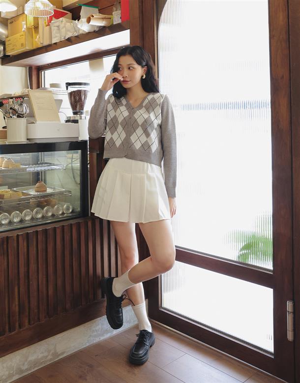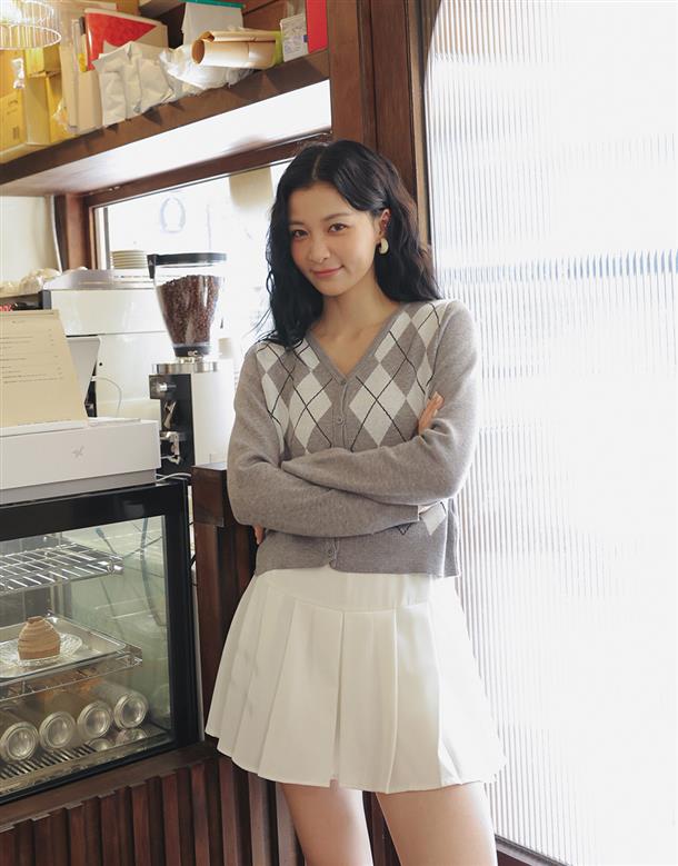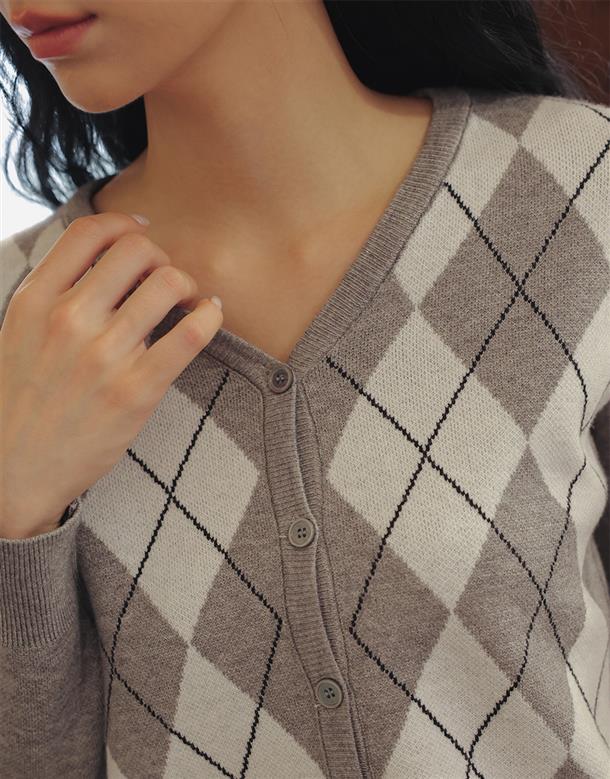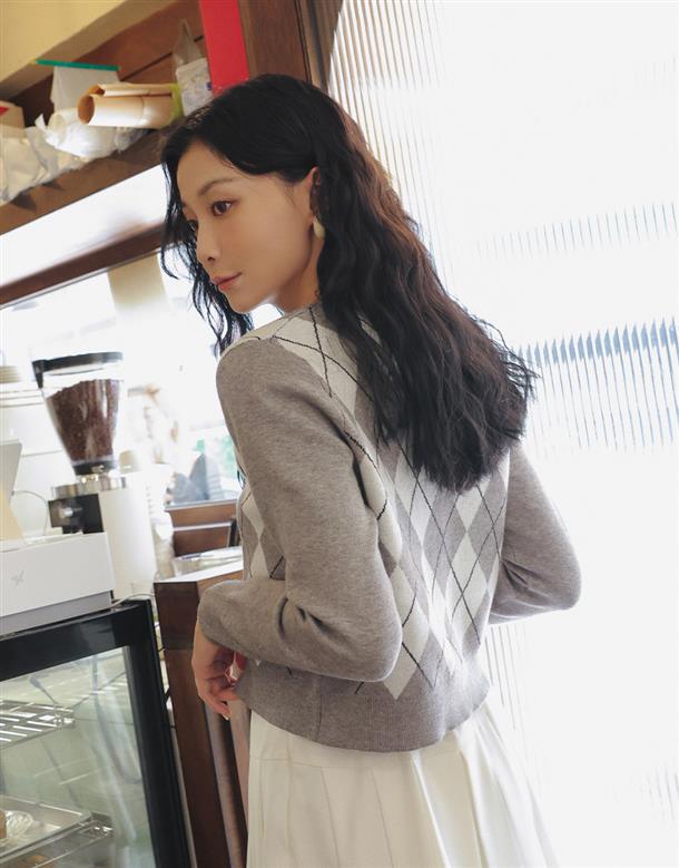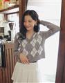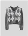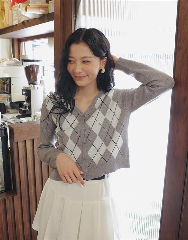 親膚仿棉針織紗線,版型合身短版,撞色菱格設計。