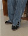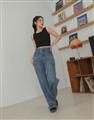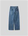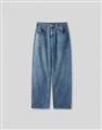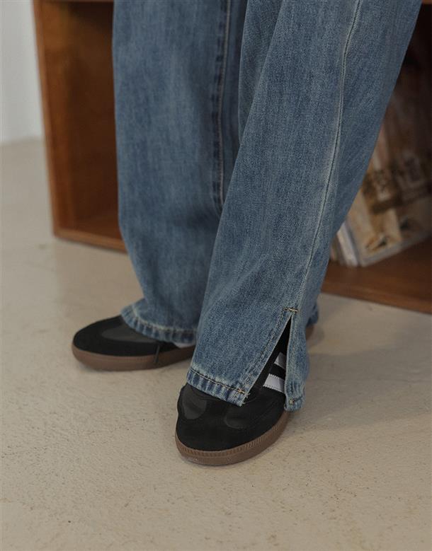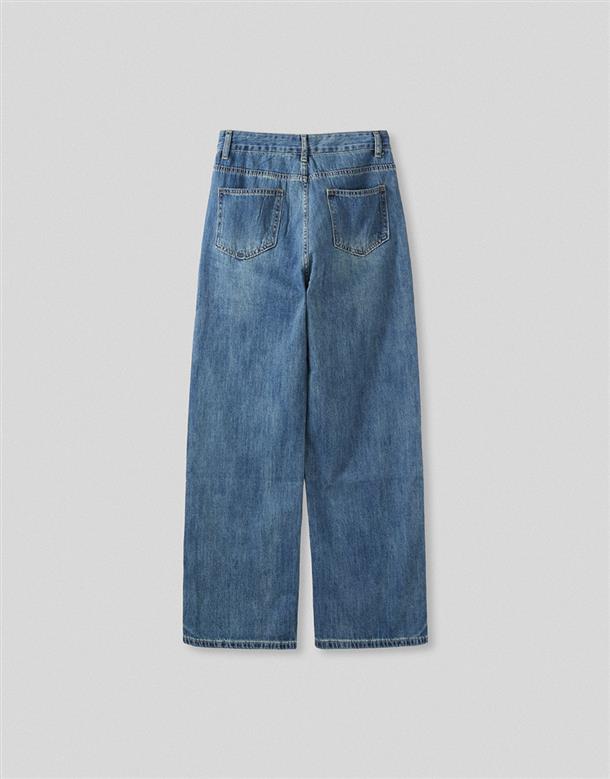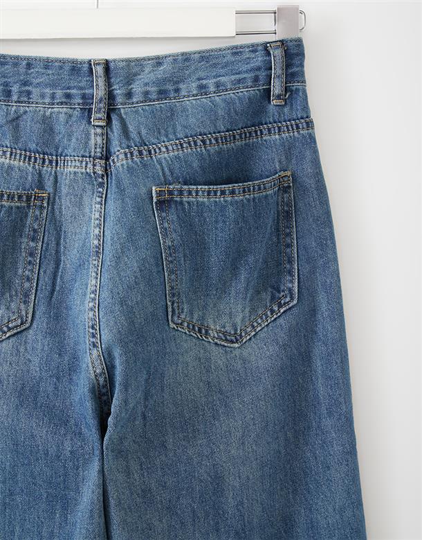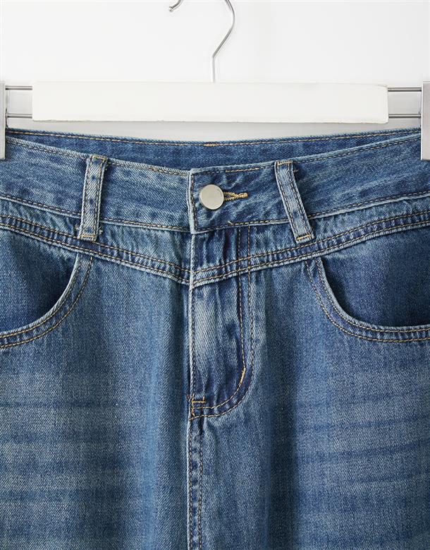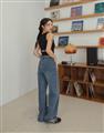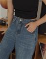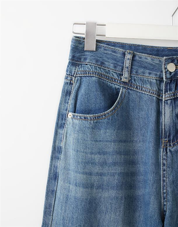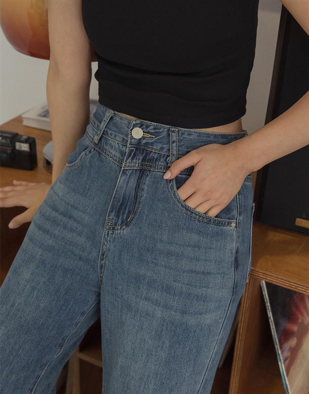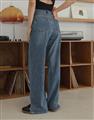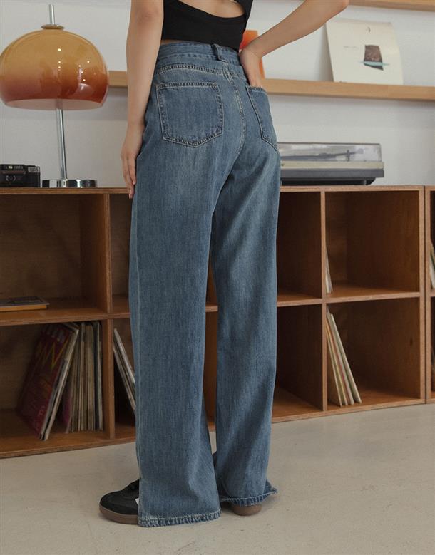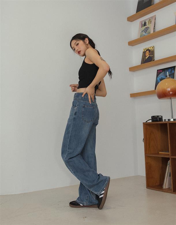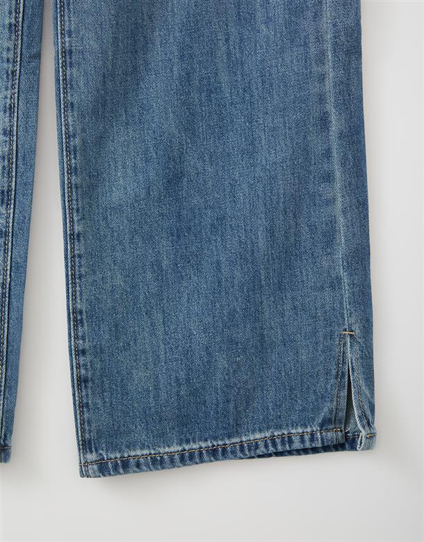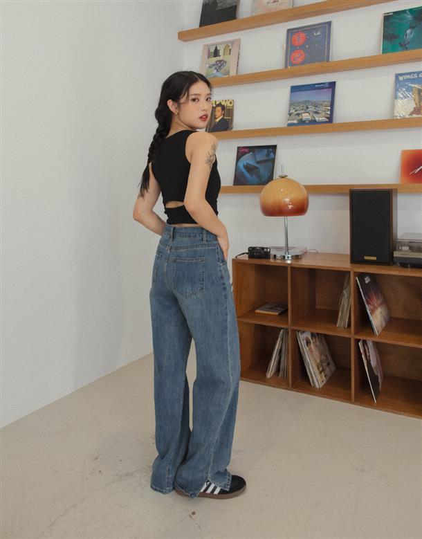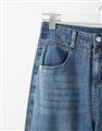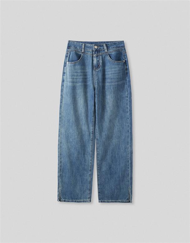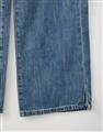 舒適柔軟牛仔面料,腰節下有特殊剪裁拼接造型,版型微寬鬆直筒,極修飾顯瘦拉長腿褲版,褲口外側小開衩。