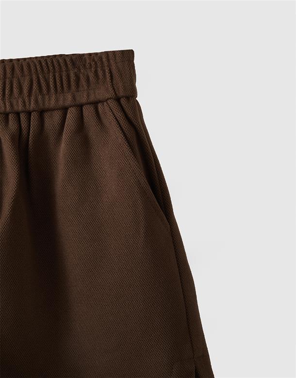 質感厚實親膚毛呢面料,腰頭鬆緊帶設計,有斜插口袋,有固定式內裡,褲腳有小開衩修飾大腿線條。深淺色請分開洗滌。