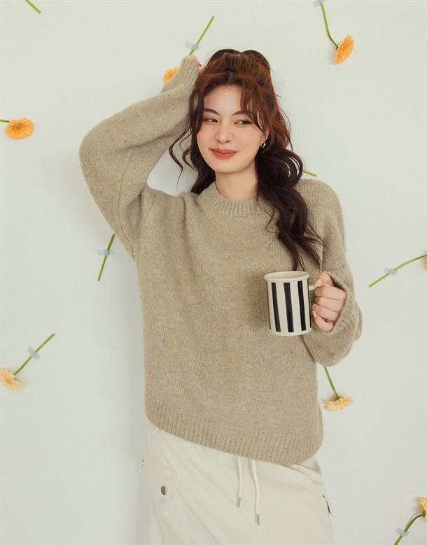 Q軟厚實親膚毛織面料,特殊小雜點參色設計,版型寬鬆。